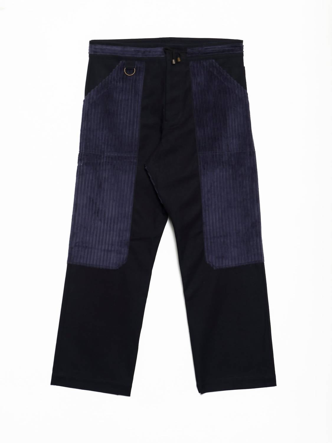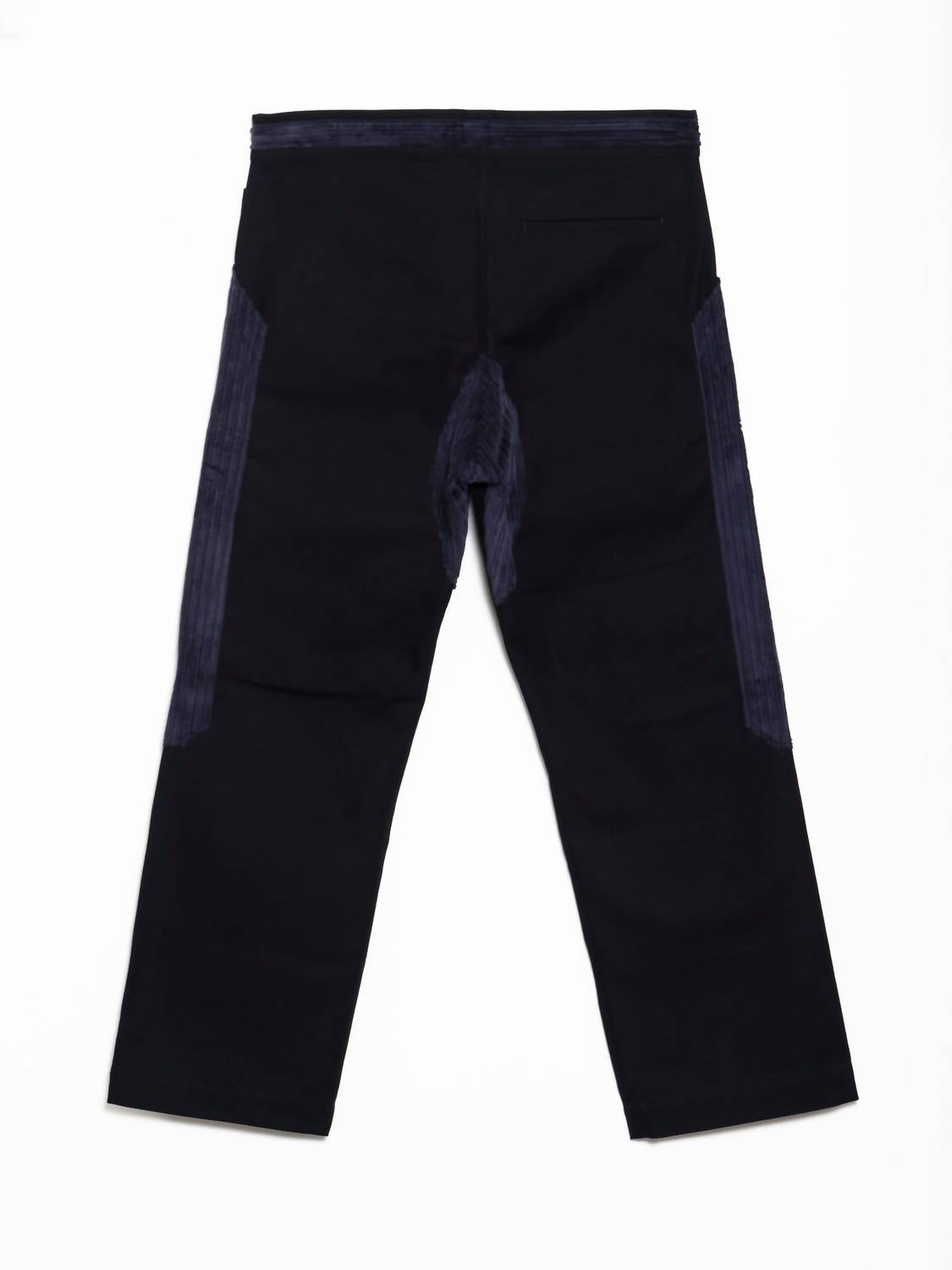 These straight-leg corduroy trousers feature large ribbed corduroy contrast patches and D-ring hardware at the waistband, adding a modern, utilitarian touch. Crafted from 100% cotton, they offer comfort, durability, and textured detailing for a versatile, stylish look.