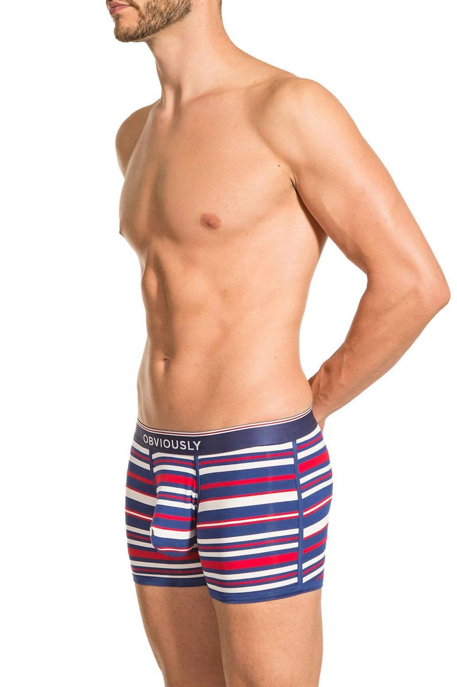 Discover true comfort with the PrimeMan Boxer Brief by Obviously, available in a choice of red, navy, and white with a stylish stripe pattern. Crafted for men seeking functionality and superior comfort, these boxer briefs are ideal for vacations and summer occasions, featuring mid-length 3-inch (7.5 cm) legs and a deeper seat for the perfect fit. Made from an exceptionally light and soft custom MicroModal/Lycra fabric, enhanced with AnatoMAX anatomical pouch technology, these briefs ensure natural positioning with no need for readjustment. Care is simple with machine wash and line dry instructions, ensuring effortless maintenance alongside premium comfort.