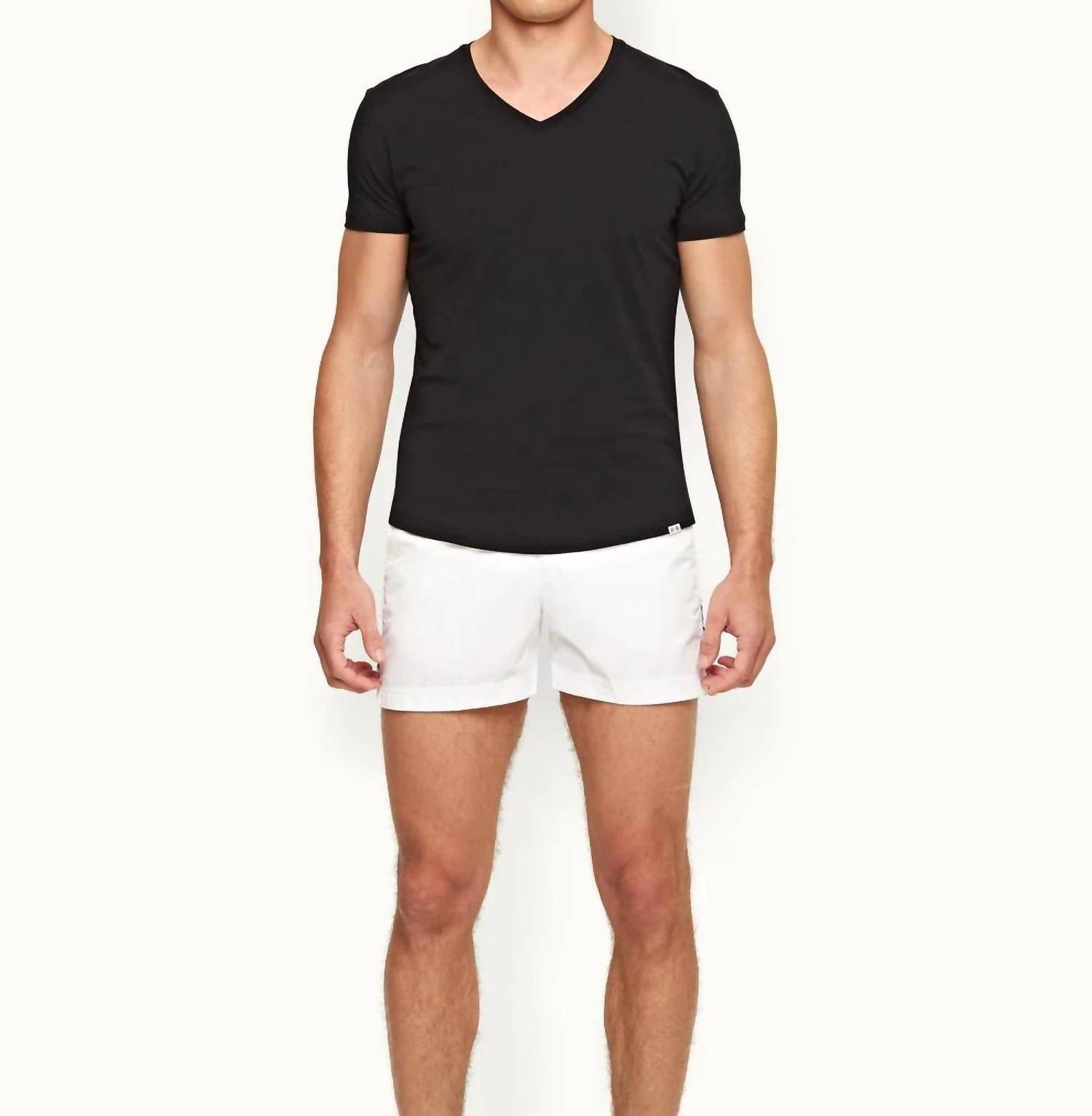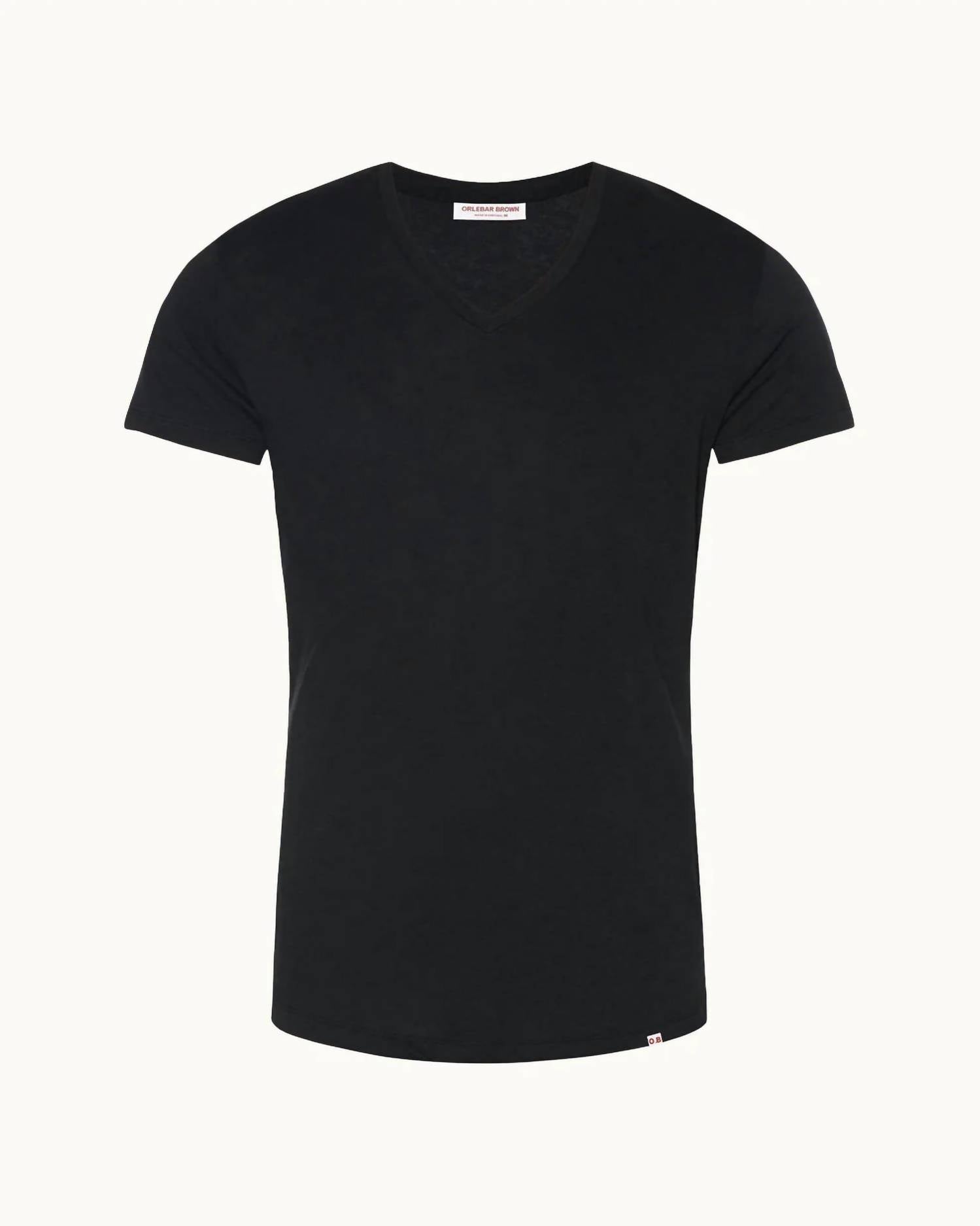 Elevate your wardrobe basics with the OB-V T-shirt from Orlebar Brown, crafted for everyday versatility in solid black. This short sleeve, V-neck tee offers a lightweight and relaxed fit, highlighted by a curved hem. It is made from ultra-soft 100% pima cotton for superior comfort. Closure: Pull on. Perfect for vacation or summer outings.