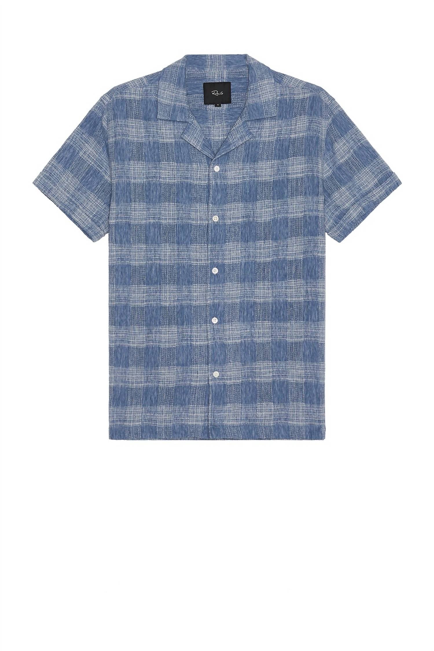 Discover the Dresden Plaid Short Sleeve Button Down Shirt by Rails, a stylish staple in Kyoto Blue. This casual shirt is crafted from 100% cotton for a comfortable fit, designed with short sleeves and a classic collar. Originating from China, it features a front button closure and rolled cuffs for a relaxed look. Care is easy with machine wash instructions, making it perfect for any summer occasion, whether you're on vacation or enjoying a day out in preppy style.