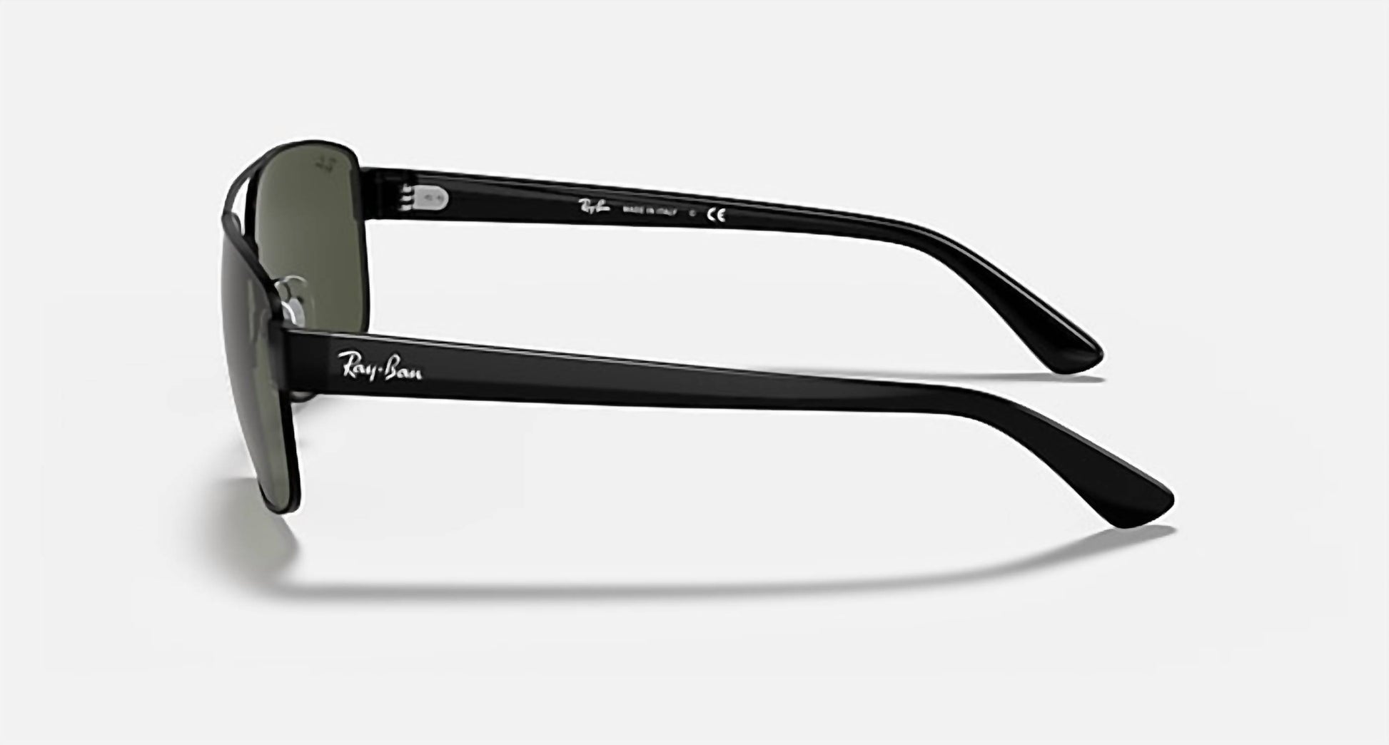 Discover the Ray-Ban RB3663 002/31 sunglasses, where modern flair meets iconic style in a polished black metal frame. These men's rectangle frame sunglasses boast G-15 green lenses, providing 100% UV protection and crisp visual clarity. Dimension-wise, enjoy the perfect balance with lens dimensions of 60mm width and 46mm height, complemented by a 17mm bridge and 140mm temple length. With adjustable nose pads for a secure fit, they're as comfortable as they are stylish, coming with an original Ray-Ban case and cleaning cloth.