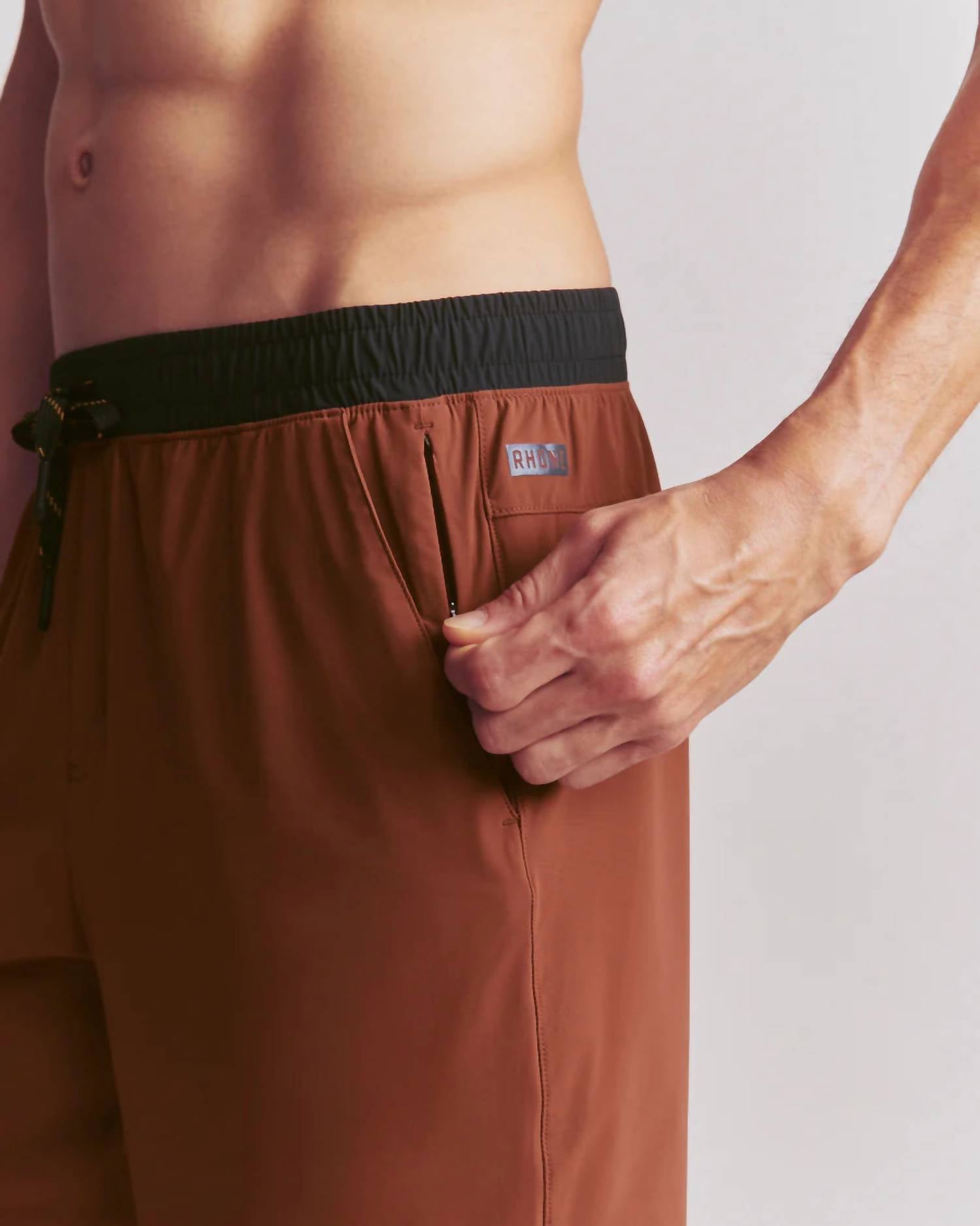 Introducing the Pursuit Lightweight Short by RHONE, a perfect blend of versatility and comfort for active summer days. Featuring an all-way stretch fabric composed of Nylon and Elastane, these shorts boast a pull-on closure and a plethora of pockets for all your essentials. The design is minimalist in a solid cinnamon and black color scheme, ideal for vacations or Easter getaways. Care is easy with machine wash cold and tumble dry low, avoiding bleach, ironing, dry cleaning, or fabric softeners.