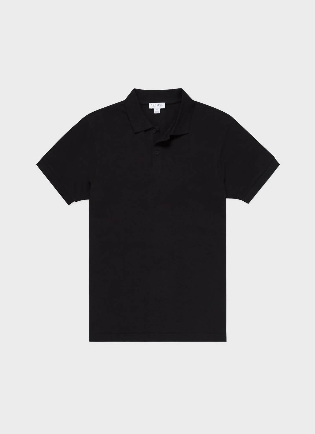 Experience the timeless elegance of the Sunspel Piqué Polo Shirt, meticulously crafted for the modern man. This black polo features short sleeves and is composed of 100% Supima cotton, offering unmatched softness and durability. Made in Portugal, it showcases refined details like branded shell buttons and a rib collar. Care instructions include a gentle wash at 30°C and the option for dry cleaning; avoid tumble drying to maintain its classic look.