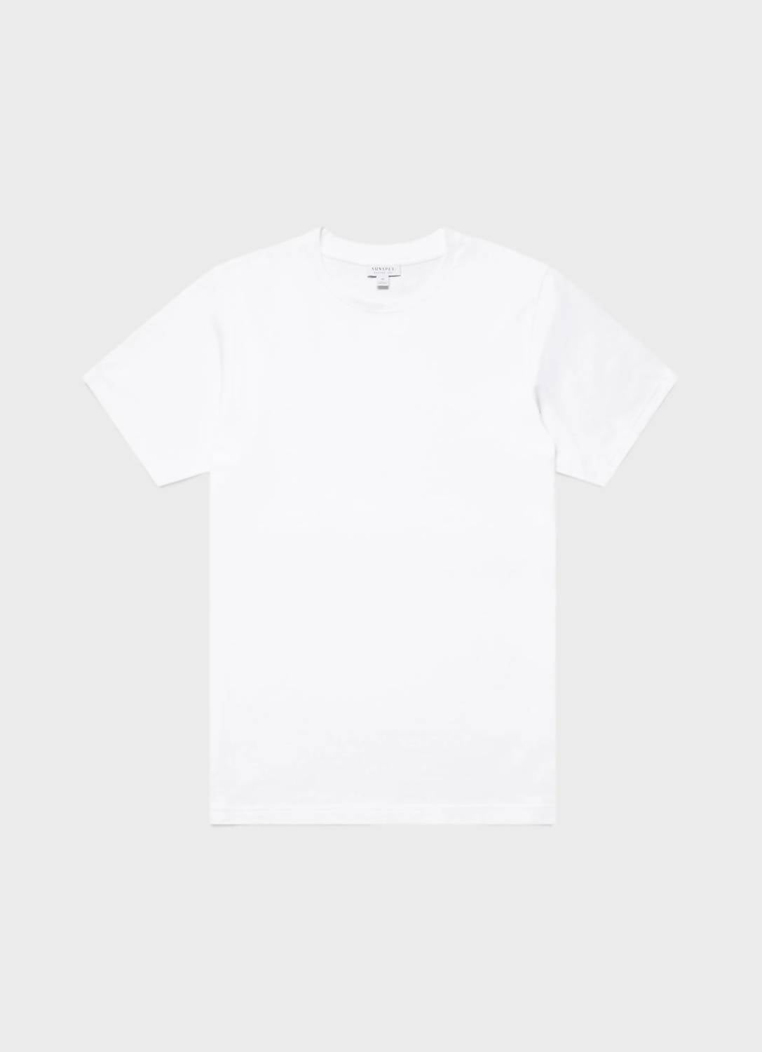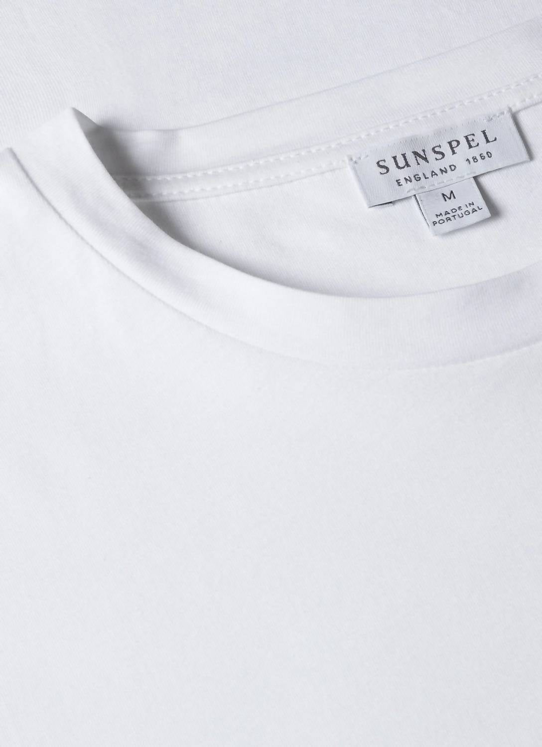 Experience timeless elegance with the Riviera T-Shirt by Sunspel, originally designed for Daniel Craig in Casino Royale. This men's short sleeve tee in white is crafted from 100% Supima cotton, sustainably sourced from California for an extra-long staple that offers unrivaled durability and comfort. It features a classic crewneck and a simple pull-on closure, embodying understated sophistication. Made in Portugal, this luxurious piece is perfect for transitional weather and should be gently washed at 30°C and not tumble dried.