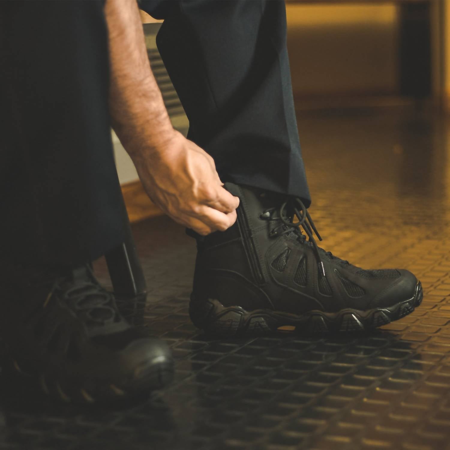 Experience the unbeatable performance of the Thorogood Men's Crosstrex Series 6" Hiker Waterproof Soft Toe Work Boot in sleek black. Crafted with a leather and mesh composition, these boots ensure lightweight comfort combined with waterproof functionality, perfect for any work environment. With a removable single-density polyurethane footbed and a durable Crosstrex 360 outsole, they offer the support and grip you need for any terrain. Meeting ASTM F2913 Slip Test Standards, these boots are designed with composite shank and cement construction for durability, featuring a round toe and low heel height for added comfort.