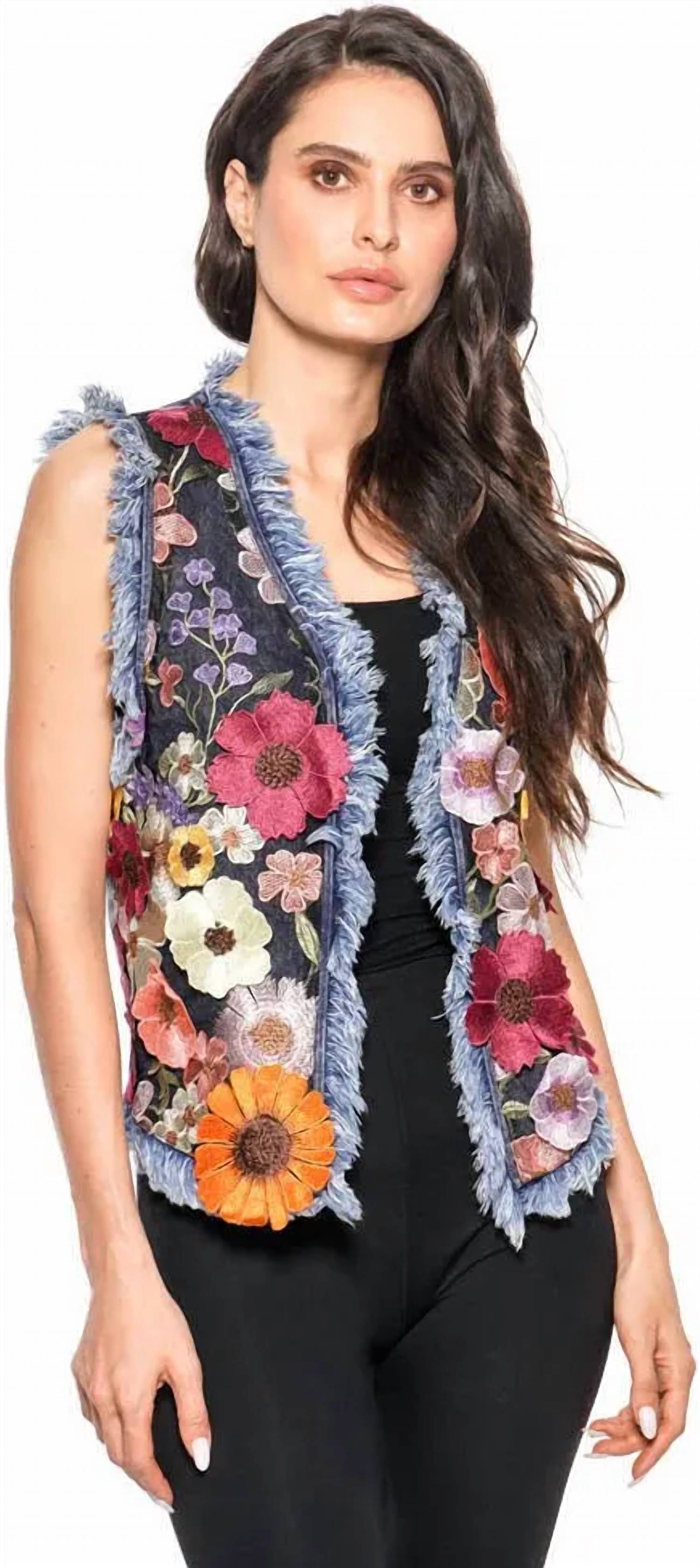 A vest so versatile you can mix and match it with almost any outfit and it will feel brand new every time. 🌸 Adore Top Line Floral Knit Vest – Style BS2527 Add a touch of artistic charm to any outfit with this beautifully detailed floral knit vest from Adore Top Line. Crafted from 100% soft cotton, this lightweight vest features vibrant embroidered-style florals set against a rich denim-inspired background, finished with trendy frayed trim along the edges for a relaxed yet elevated look. Perfect for layering over tanks, tees, or dresses, this missy-fit vest brings color, texture, and personality to your everyday wardrobe — ideal for spring through fall styling. ✨ Details: • Brand: Adore Top Line • Style: BS2527 • 100% Cotton • Floral knit design with frayed edge trim • Lightweight & breathable • Missy fit — easy and flattering layering piece 💐 A statement vest that instantly dresses up any casual look!