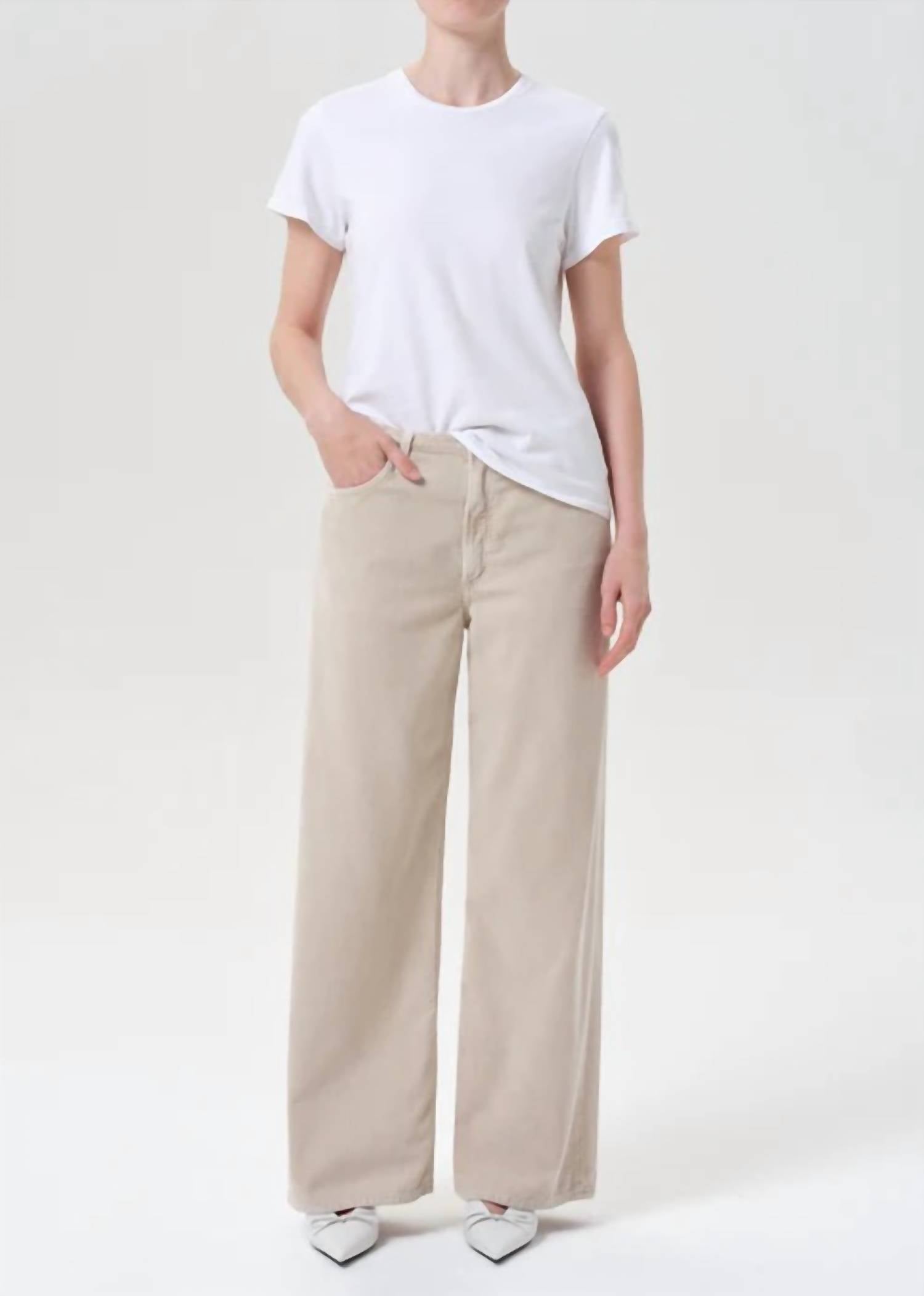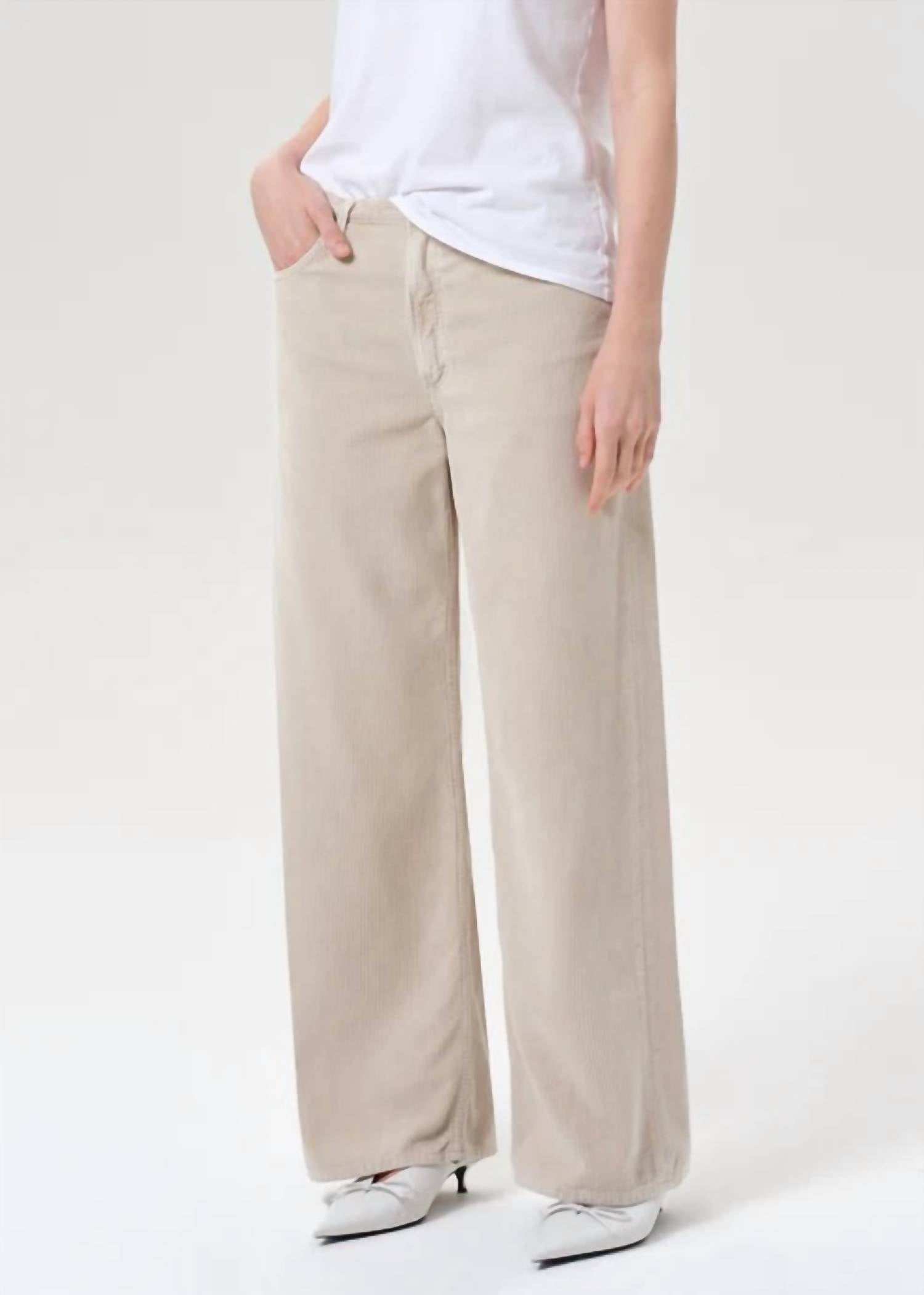 This straightleg pant is both stylish and comfortable. Did we mention the fit is perfection? Elevate your style with the Keira Corduroy Jeans by AGOLDE in Rice Grass. These straight-leg jeans feature a high-rise fit and relaxed silhouette for effortless elegance in a soft, textured cotton blend. Crafted in Turkey, they offer comfort with a zipper fly closure and convenient pockets, perfectly embodying a vintage trend and ideal for a spring holiday party. With an 11.25" rise and 31" inseam, the jeans require machine washing cold inside out and tumble drying low for long-lasting wear. Model is 5'10" and wearing size 27.