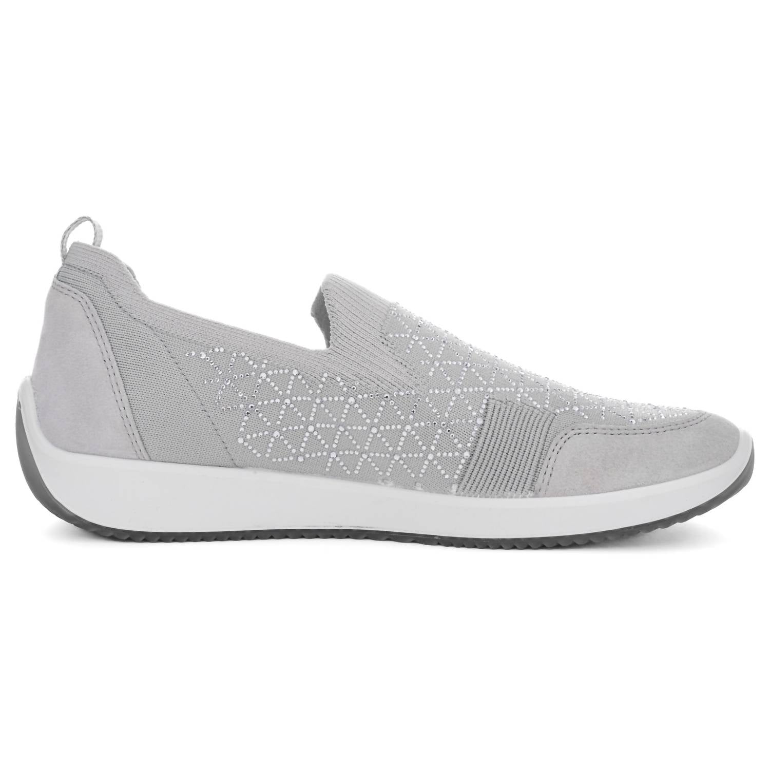 Cute, functional, and comfortable. These sneakers check all the boxes. Experience ultimate comfort and support with the Women's Lisbon Slip-on Sneaker by Ara in the elegant Pebble shade. The shoe features a removable, cushioned insole with arch support and a round toe shape, ideal for fitness and workout occasions. Crafted with a leather and textile upper and a textile lining, this sneaker is set on a synthetic Dynergy sole that molds to your foot for a personalized fit. Proudly made in Portugal, it embodies the athleisure trend, perfect for springtime activities.