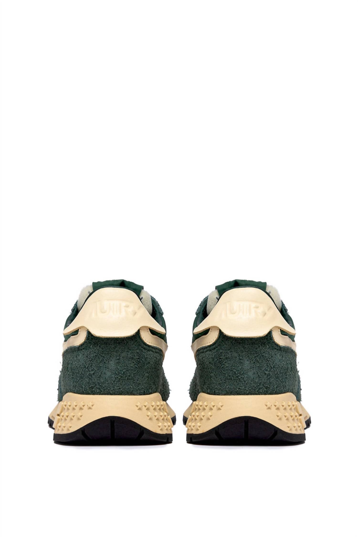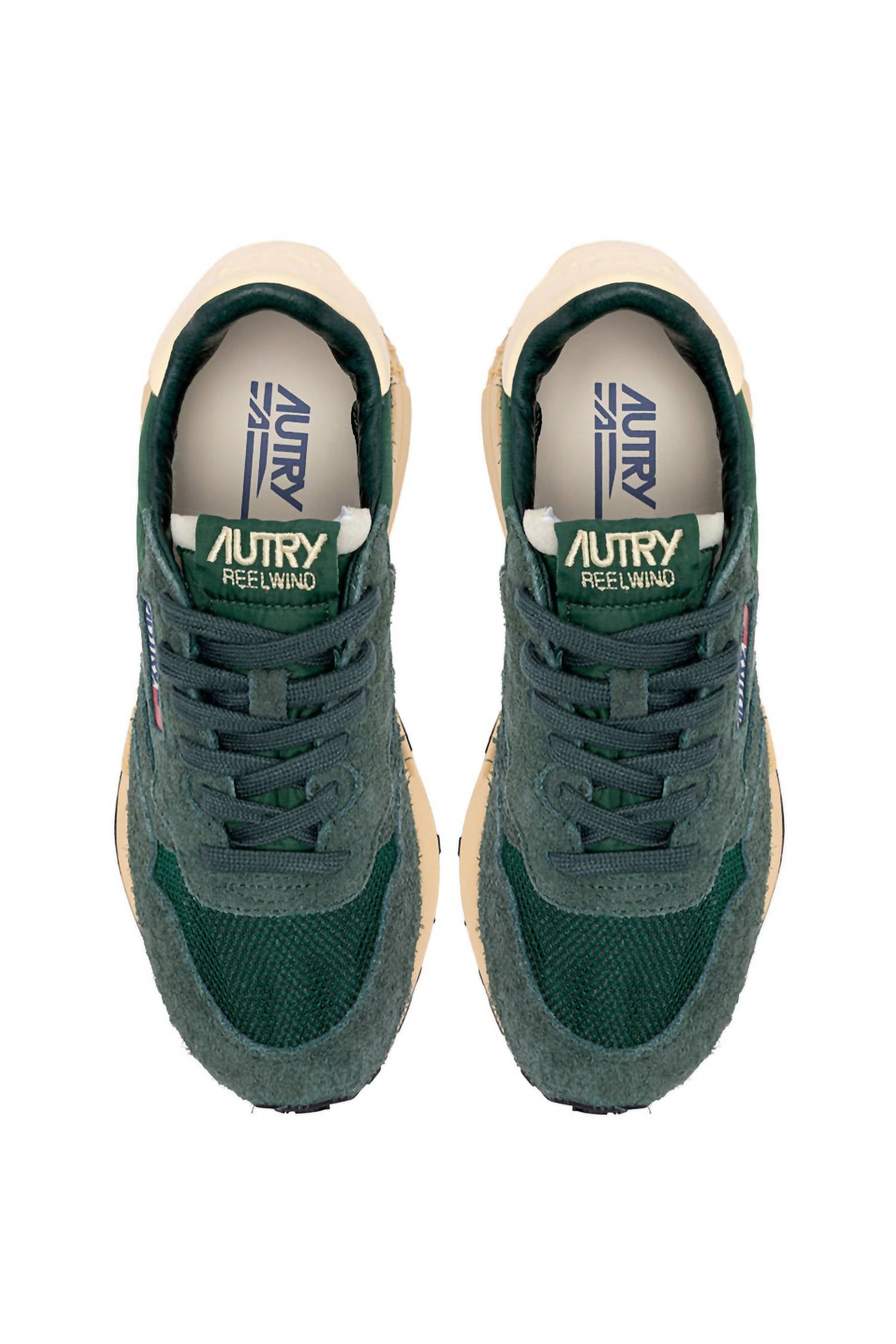 Get your daily steps in with these adorable sneakers. The AUTRY Women's Reelwind Low Sneaker in Bottle/Ruta is a stylish masterpiece for summer streetwear, ideal for a Back To School refresh. Expertly crafted, the upper integrates 15% leather, 30% suede, 40% nylon, and 15% mesh, providing a durable and breathable fit, while the lining combines 40% leather and 50% cotton terry. Designed with a low 1 1/4"-2" heel and a padded collar, the sneaker ensures all-day comfort, featuring a round, mesh toe and cotton flat laces with embroidery label detailing on the tongue. The phylon and rubber sole offers excellent traction, capturing the essence of casual sophistication.