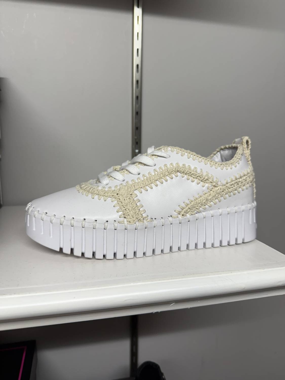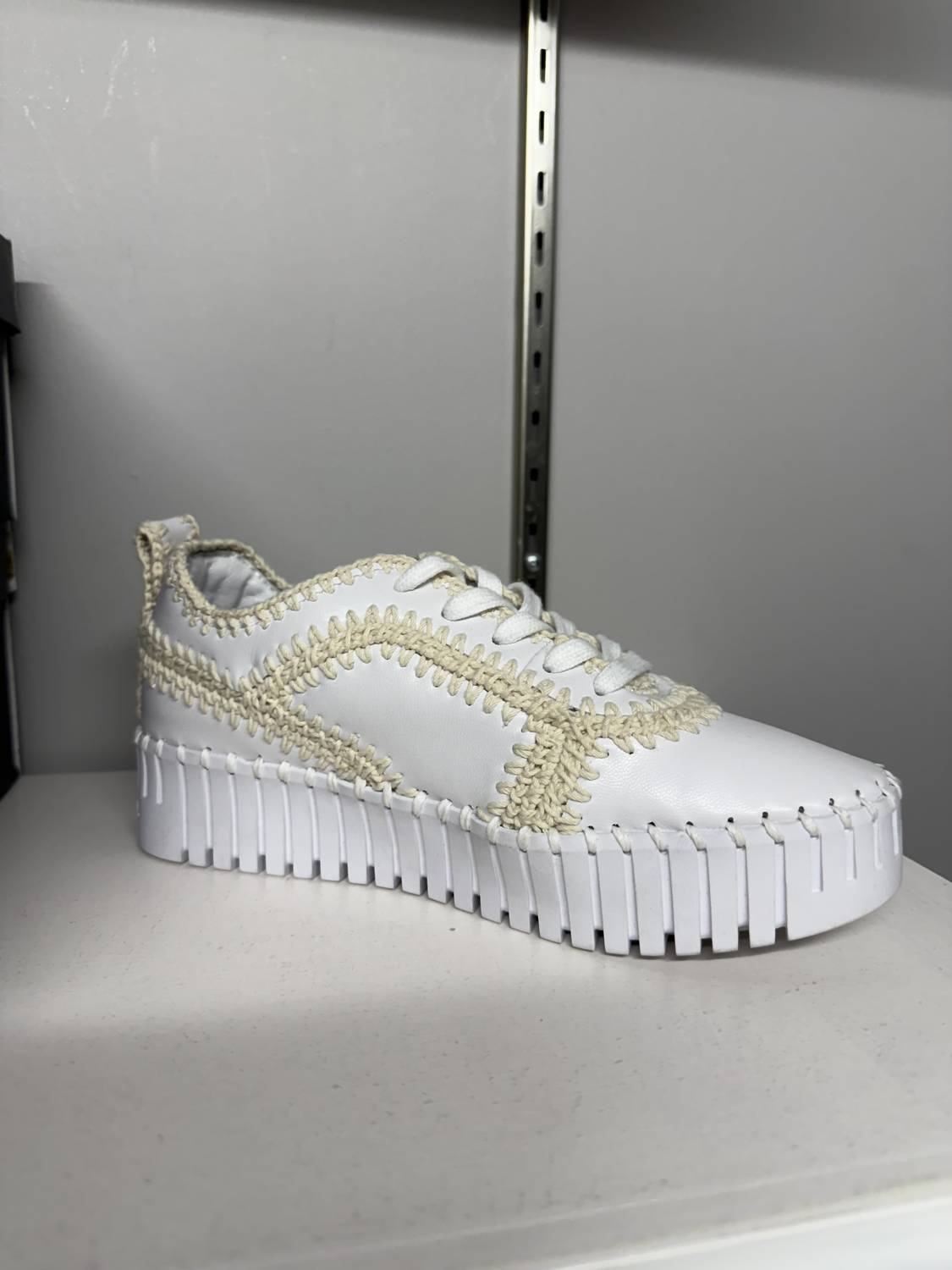 Cute, functional, and comfortable. These sneakers check all the boxes. Introducing the Women's Ivy Sneakers by BERNIE MEV in White Nude, designed for ultimate comfort and timeless style. With smooth leather uppers and decorative stitching trim, these sneakers boast a classic lace-up front panel and a round toe shape. Enhanced with a memory foam cushioned footbed, they promise a comfortable stride and a smooth leather lining ensures an abrasion-free environment for your feet. Perfect for those seeking a blend of comfort and chic design.