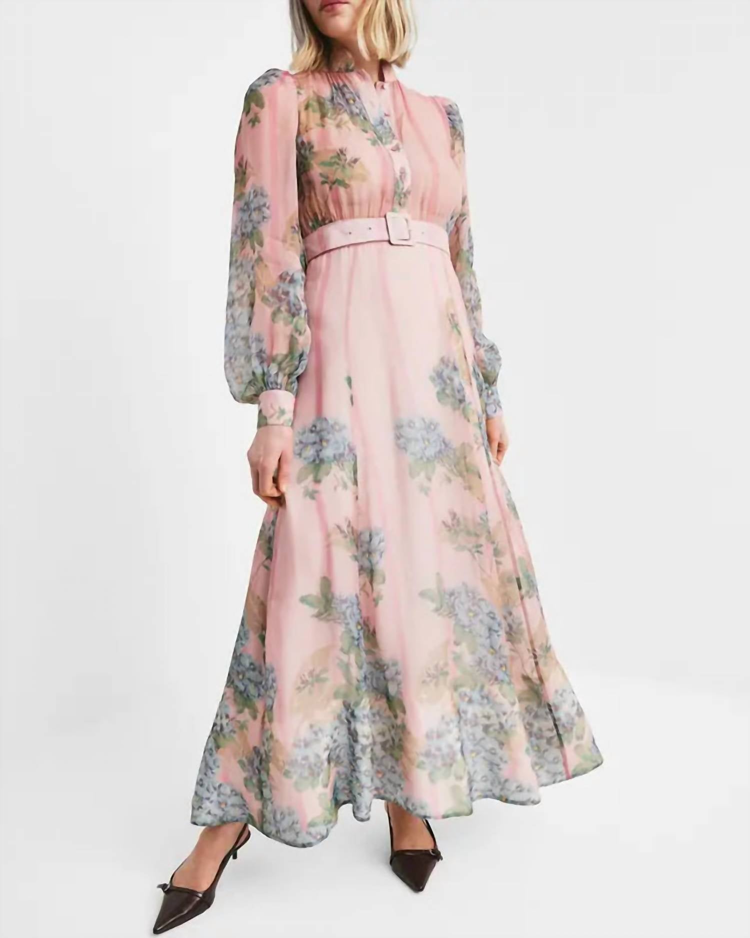 Who doesn't love a good maxi dress? This one you'll be reaching for season after season. The Organza Belt Dress by byTiMo is a stunning maxi-length piece in a vivid Blue Wallpaper print, perfect for a spring holiday party. It features a fitted top with a mockneck and long voluminous sleeves, complemented by a voluminous A-line skirt. Crafted from 100% FSC Certified Viscose, this dress boasts a side zip closure with a matching belt to accentuate the waist. With its floral pattern and elegant design, it’s an ideal choice for chic occasions.