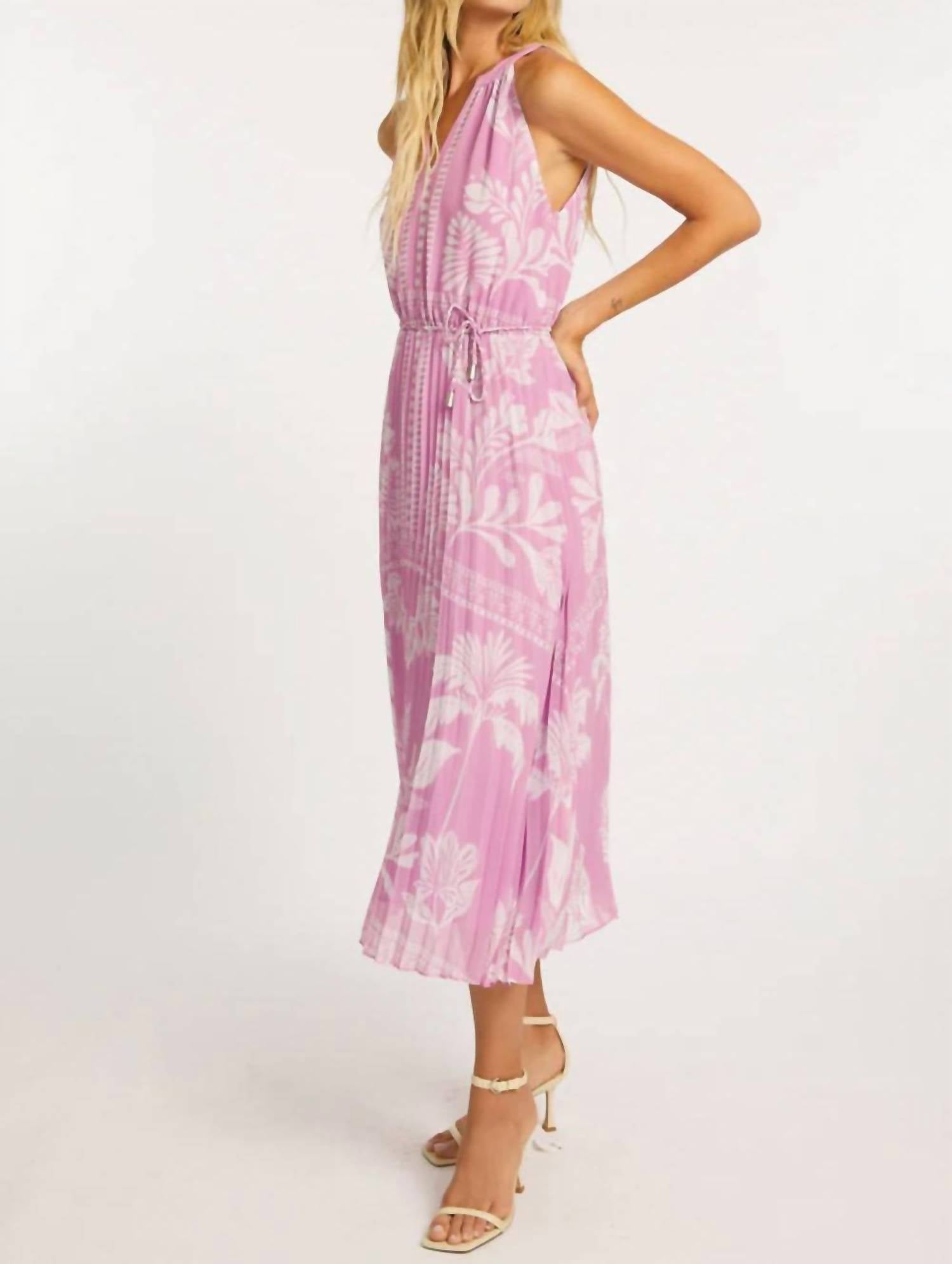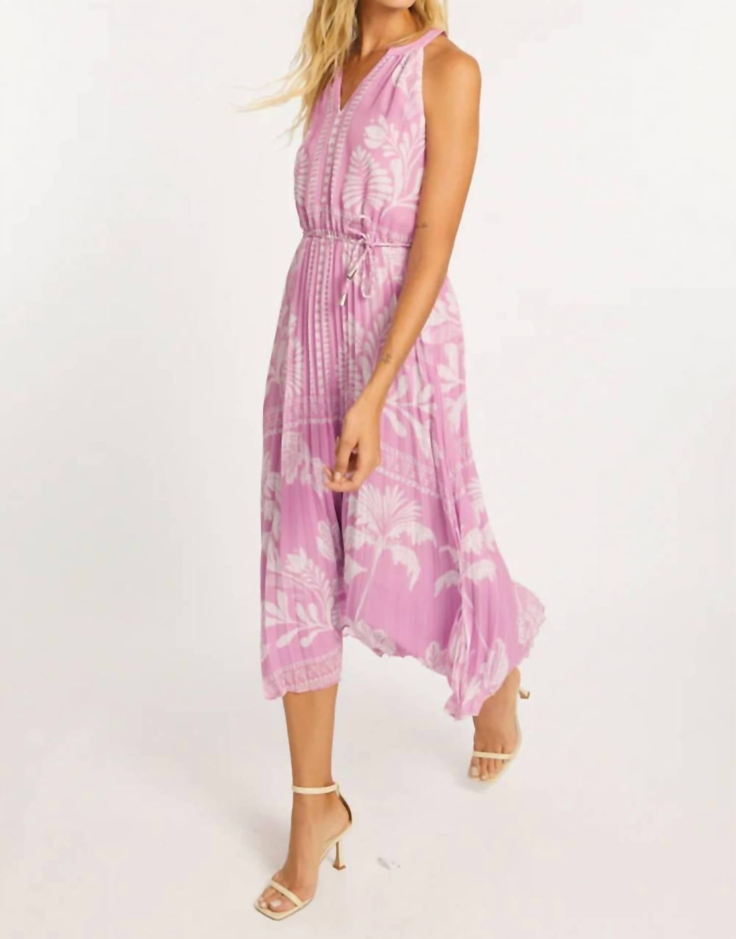 Just add slides or mules and you are good to go. Step into summer with the Women's Nouvel Dress by CABALLERO, a boho chic staple in a vibrant Palm Serenade print. This sleeveless midi dress features a flattering A-line silhouette and a stylish V-neckline, perfect for beach days and Thanksgiving gatherings. Made from polyester, it promises both comfort and style. Closure: Tie closure. Care: Tumble dry. 100% Polyester