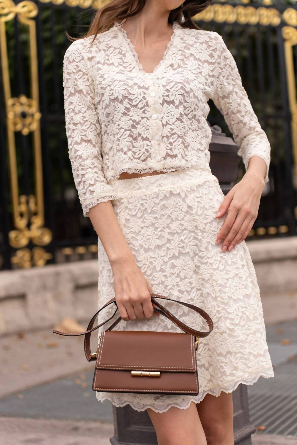 The perfect mini skirt does exist. Elevate your wardrobe with the Diane Lace Skirt by CHOKLATE PARIS, an elegant piece that exudes sophistication. This women's skirt features a classic mid-length design crafted from delicate floral stretch lace, perfect for minimalist fall fashion. With its pull-on closure, it offers both style and convenience for New Year's Eve events or church occasions. Embrace timeless charm with this exquisite skirt, tailored for those who appreciate refined dress.