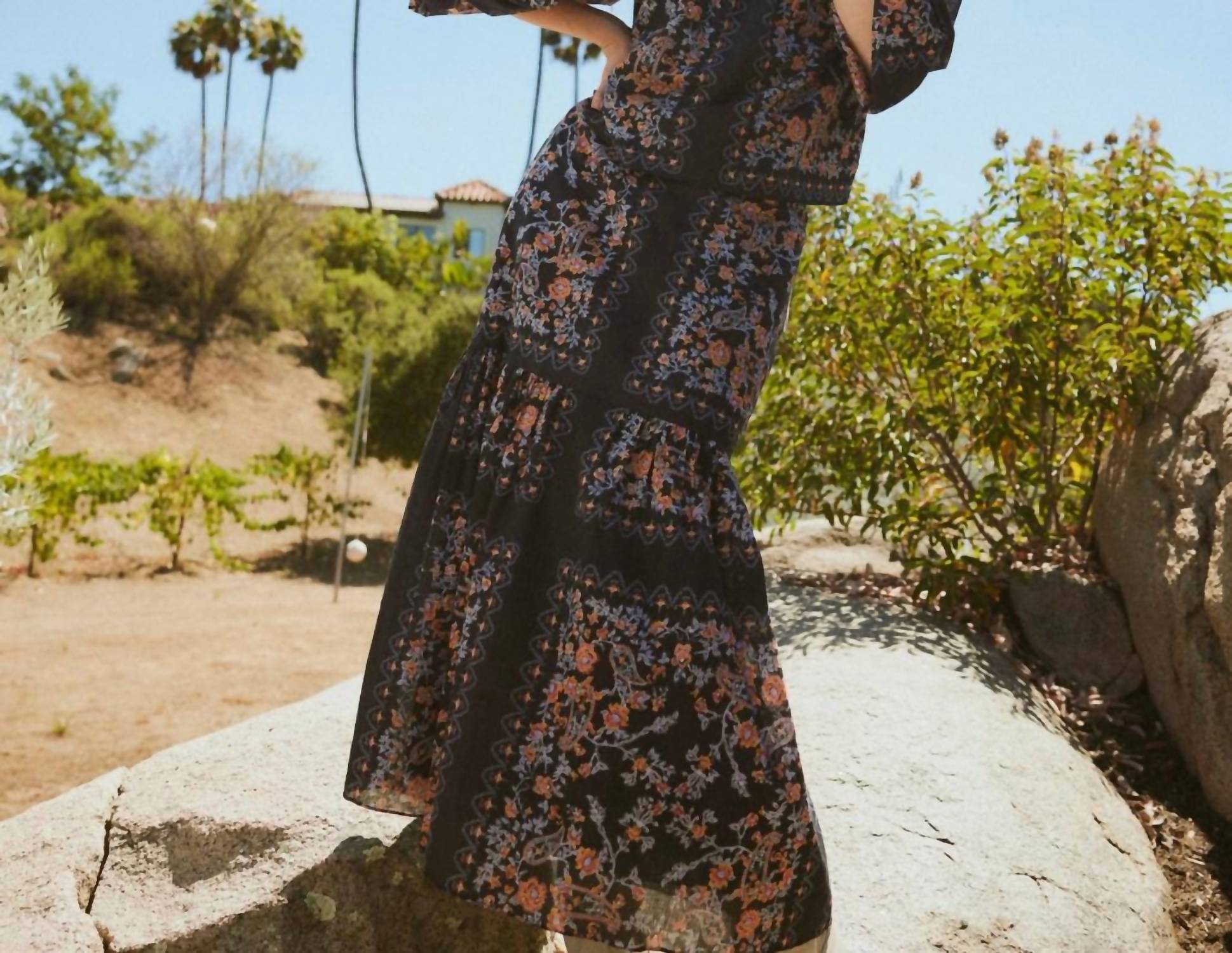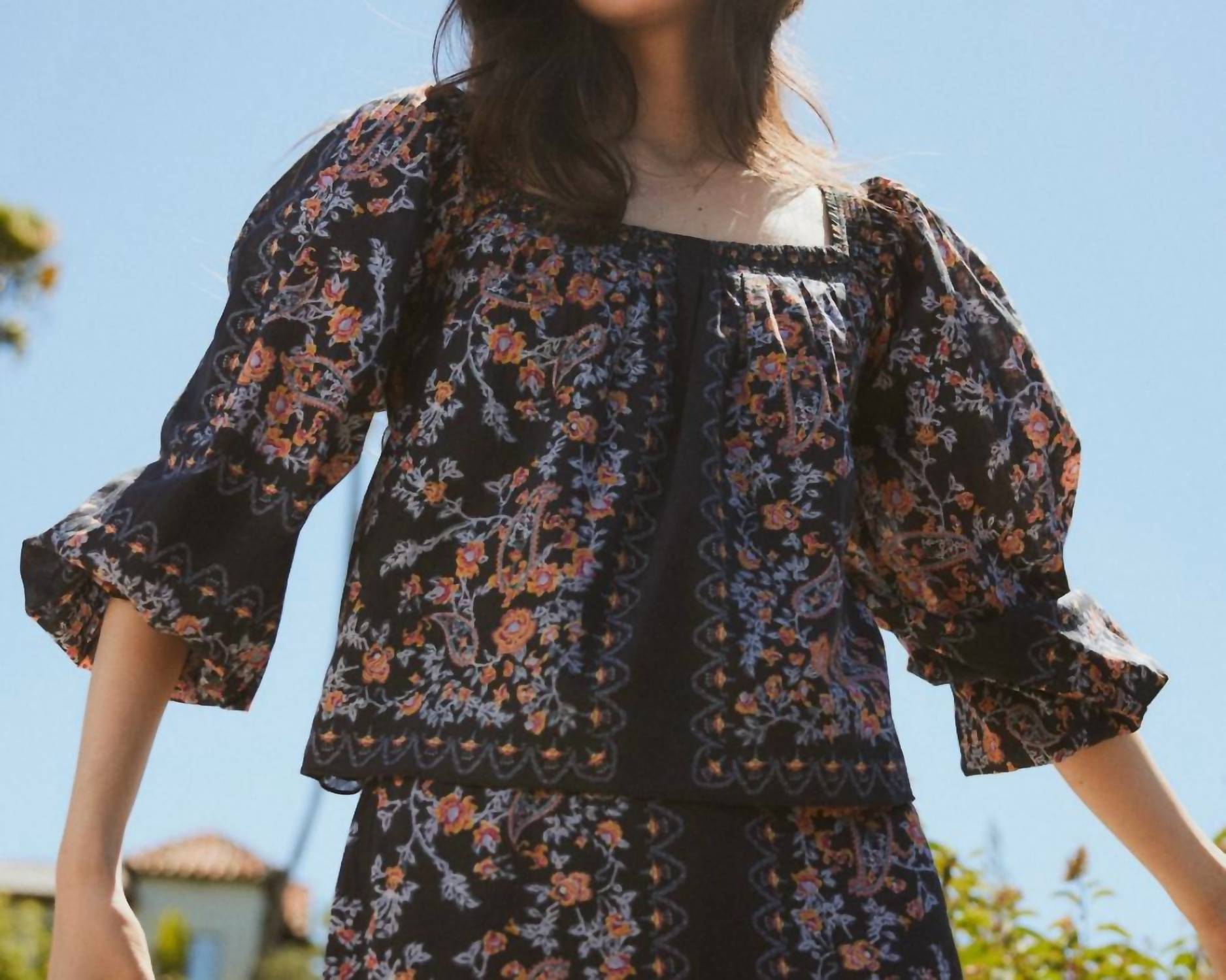 A timeless blouse that will never go out of style. Discover the Lucille Blouse by Cleobella, a romantic piece thoughtfully handmade from 100% GOTS-certified organic cotton. Featuring long sleeves with elasticized cuffs and neckline, this blouse showcases the charming Dark La Ramos print. Designed with a relaxed, bohemian silhouette, it boasts detailed floral patterns for an effortlessly chic look. Made in India, it offers a pull-on closure for ease and comfort.
