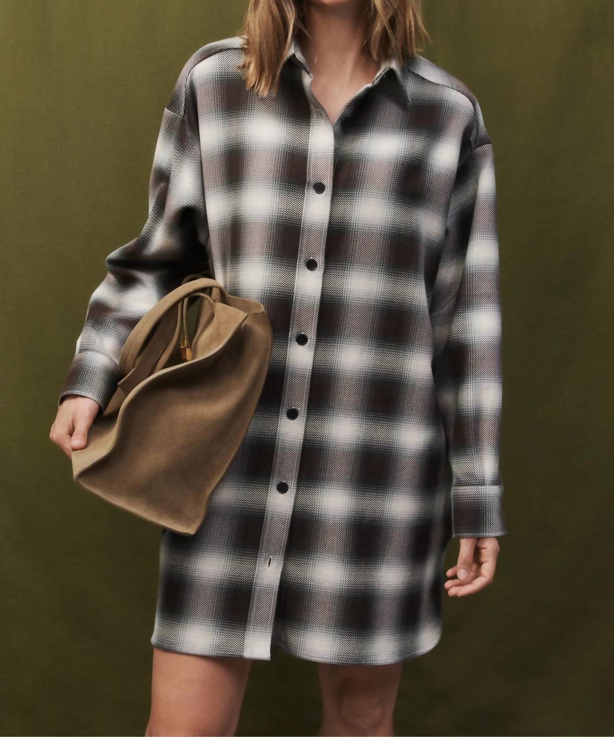 The kind of easy and flattering dress you'll be reaching for all season long. Discover the CLOSED Shirt Dress, a perfect blend of style and comfort in Dark Raisin Red with a seasonal shadow check pattern. This mini-length shirt dress is crafted from 100% Portuguese cotton, featuring long sleeves and a brushed interior for added softness. It includes a pointed collar, button closure, and side slit pockets, making it a versatile piece for any holiday party. Proudly crafted in Portugal, this dress is designed to be a chic addition to your spring wardrobe.