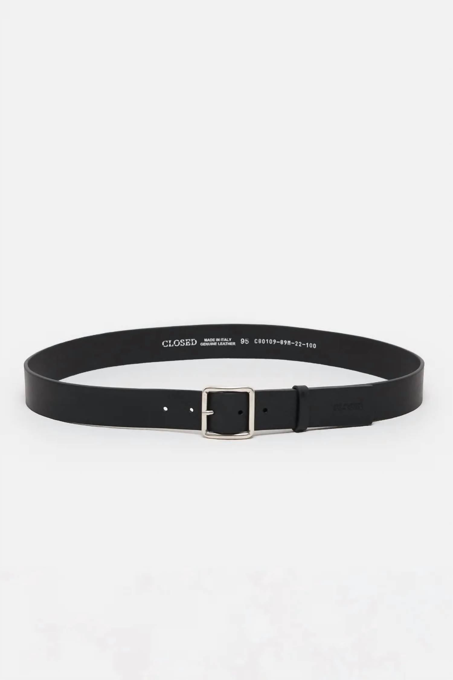 Accentuate your wardrobe with this stylish women's belt, expertly designed to offer a perfect balance of fashion and function. Besides, you can never have too many belts, right? Introducing the Women's Cowhide Leather Classic Belt by CLOSED, a timeless accessory crafted for elegance. Handmade in Italy from 100% cowhide leather, this classic belt in black showcases a silver buckle and embossed logo for a refined look. The untreated material of this belt retains its natural texture and develops a unique patina over time. Adding this exquisite piece to your wardrobe seamlessly blends functionality with sophisticated style.