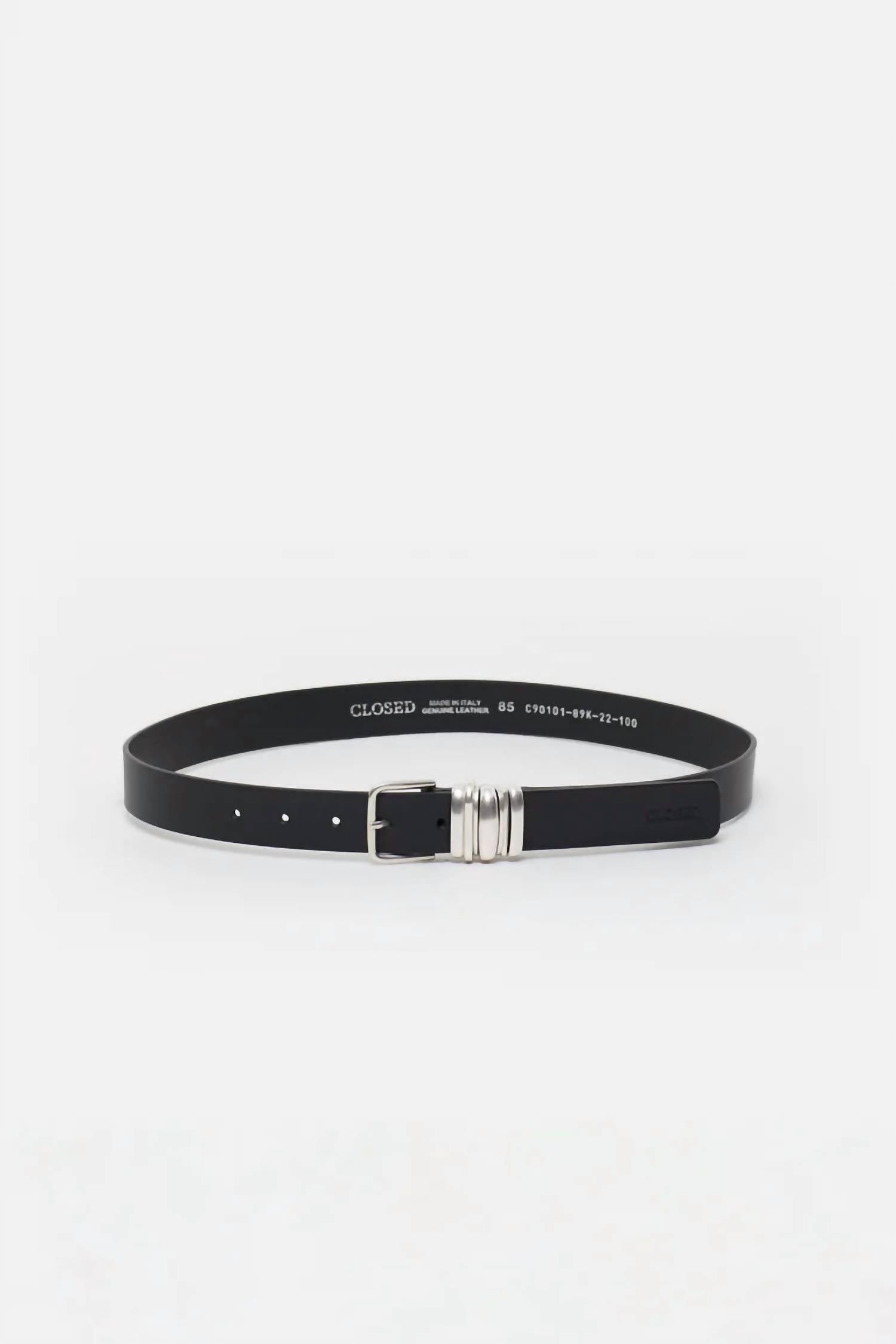 Upgrade your accessory game with this stylish and versatile belt that will tie any outfit together. This must-have accessory is classic in its design and will never go out of style. Introducing the Women's Italian Leather Polished Belt by CLOSED, crafted for elegance in classic black Italian leather. This luxurious piece features polished, multi-dyed edges and an embossed logo, ensuring both style and sophistication. Made from 100% cowhide leather, this belt is designed with a metal buckle for an adjustable fit. Made in Italy, it represents superior craftsmanship and timeless design.