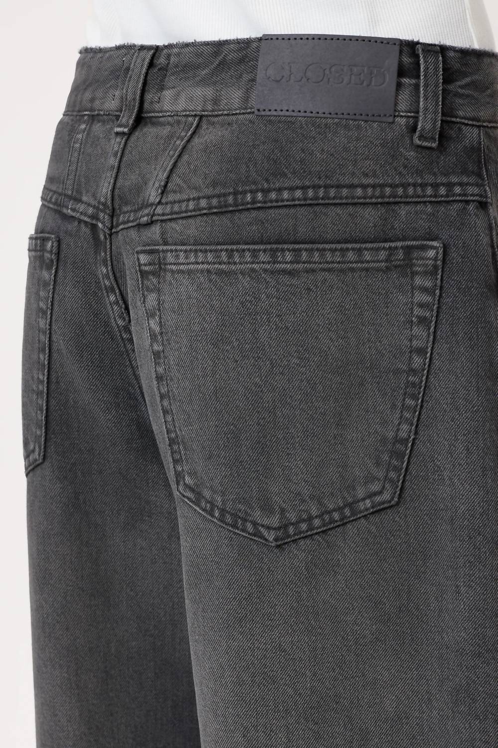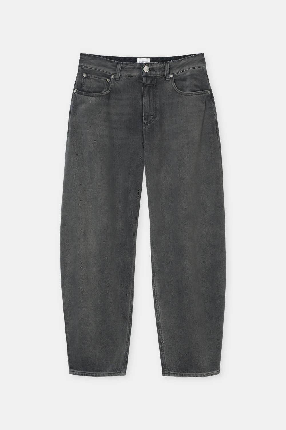 Comfortable and stylish, we love this cropped jean for all of the obvious reasons. Introducing the Women's Jazzie Barrel Jeans by CLOSED, a chic addition to your wardrobe in dark grey with a refined solid pattern. These jeans feature a stylish barrel fit with a mid-rise waist and a cropped, flared leg profile, making them perfect for a holiday party. Crafted in Italy from 100% organic cotton, they offer a unique appearance thanks to a special multi-step mineral-based tinting process. Closure: Zip closure.