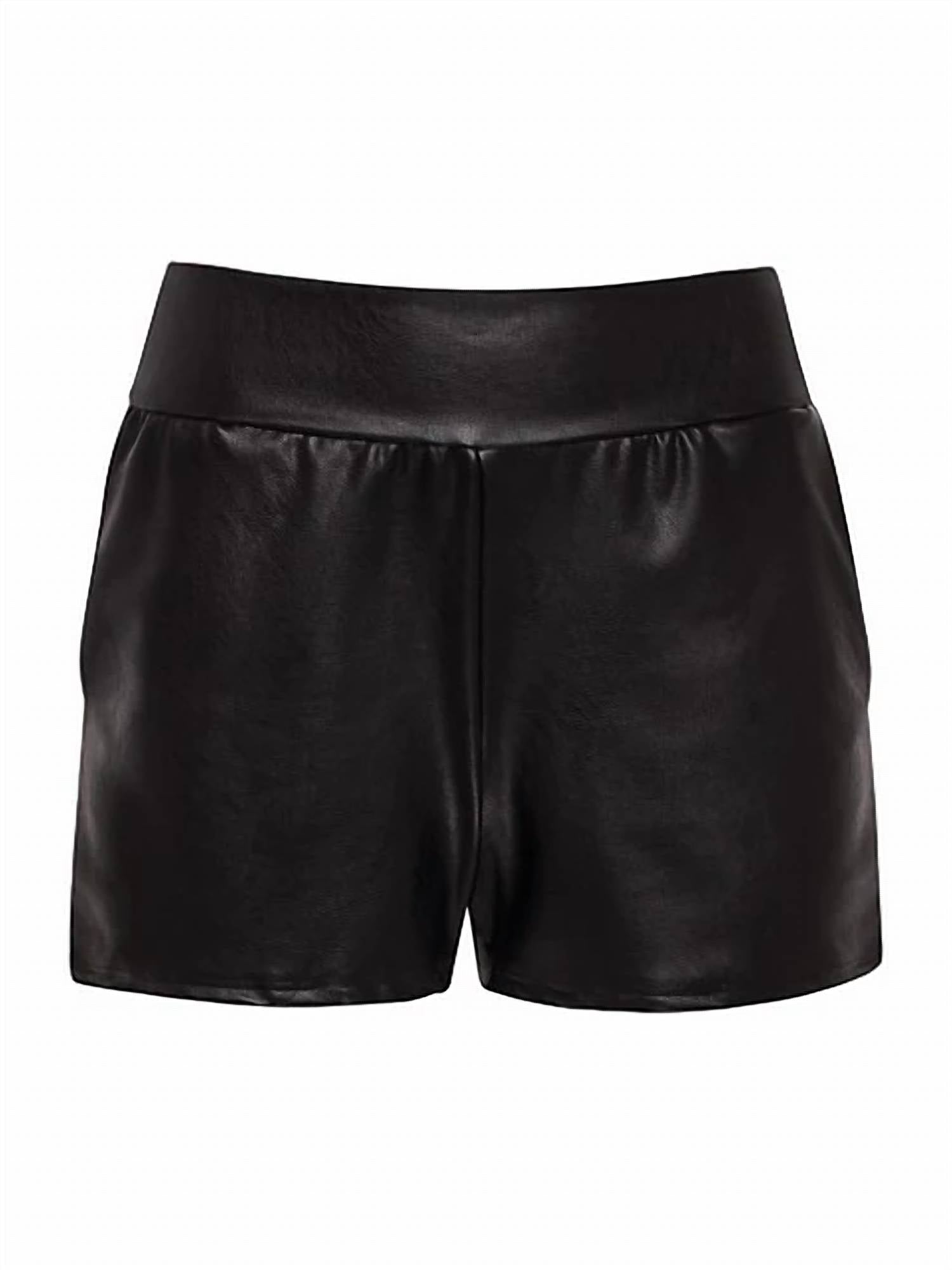 High-waist is here to stay and we especially love this style short. Pull-on styling. Side slant pockets. Soft faux leather faux with subtle shirred detail. Shorts measure approx 33 cm in length. Machine wash.