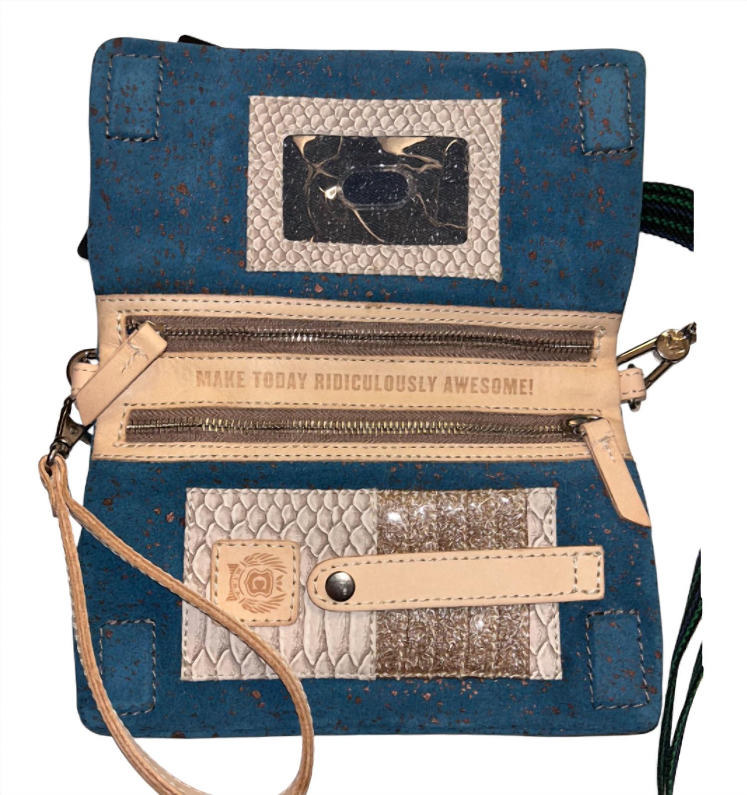 Discover the Consuela Women's Uptown Crossbody Shiloh Bag in a rich suede leather, a sophisticated accessory for any occasion. Designed with practicality in mind, it features a double magnetic closure, two interior zipper compartments, an exterior zipper compartment, six card slots, and an ID window. Complete with both a wristlet strap and an adjustable crossbody strap for versatility, its dimensions are 8.5" in length, 5" in height, and 1.5" in depth with a 14"-25" adjustable drop. Proudly made in Mexico, this bag combines style with functionality seamlessly.