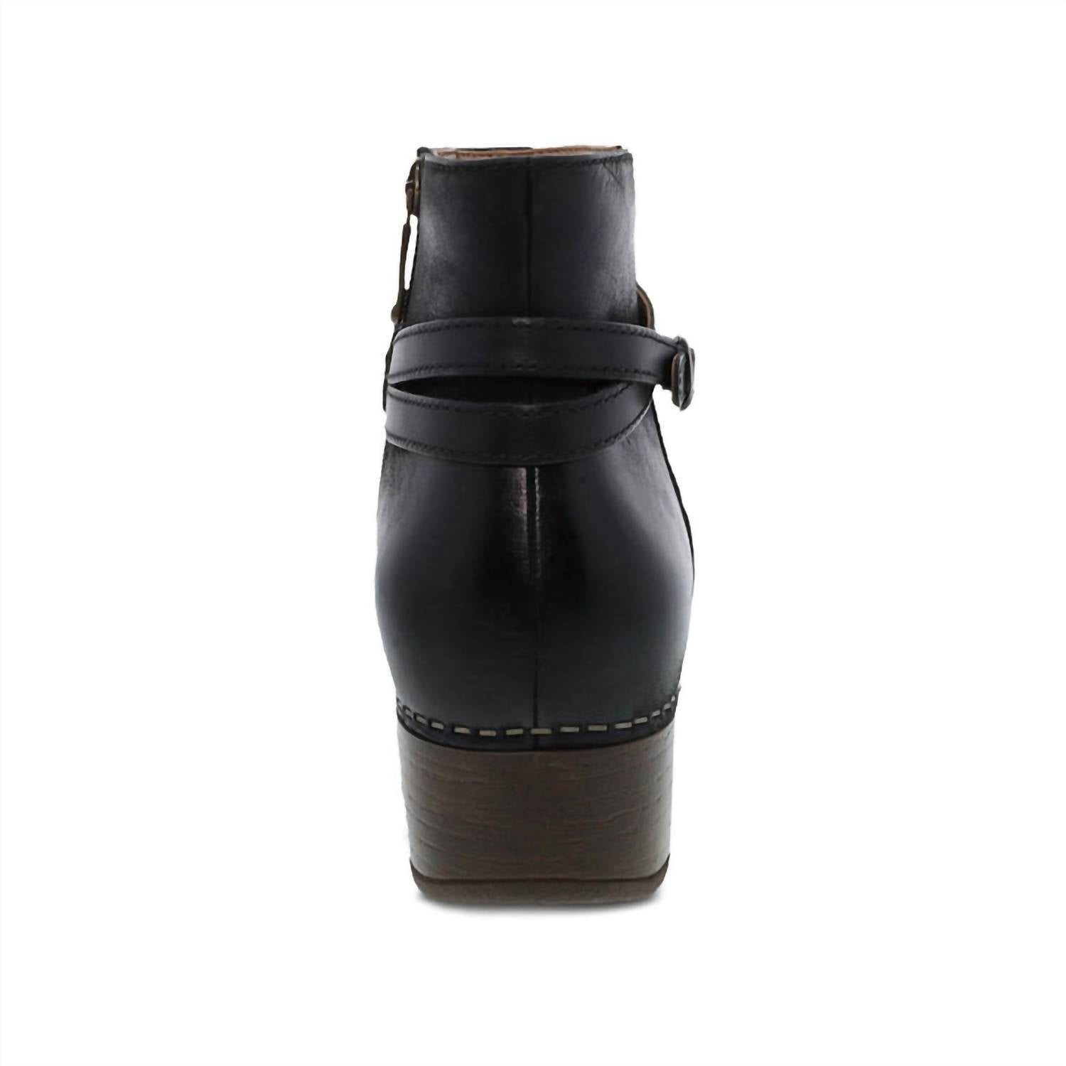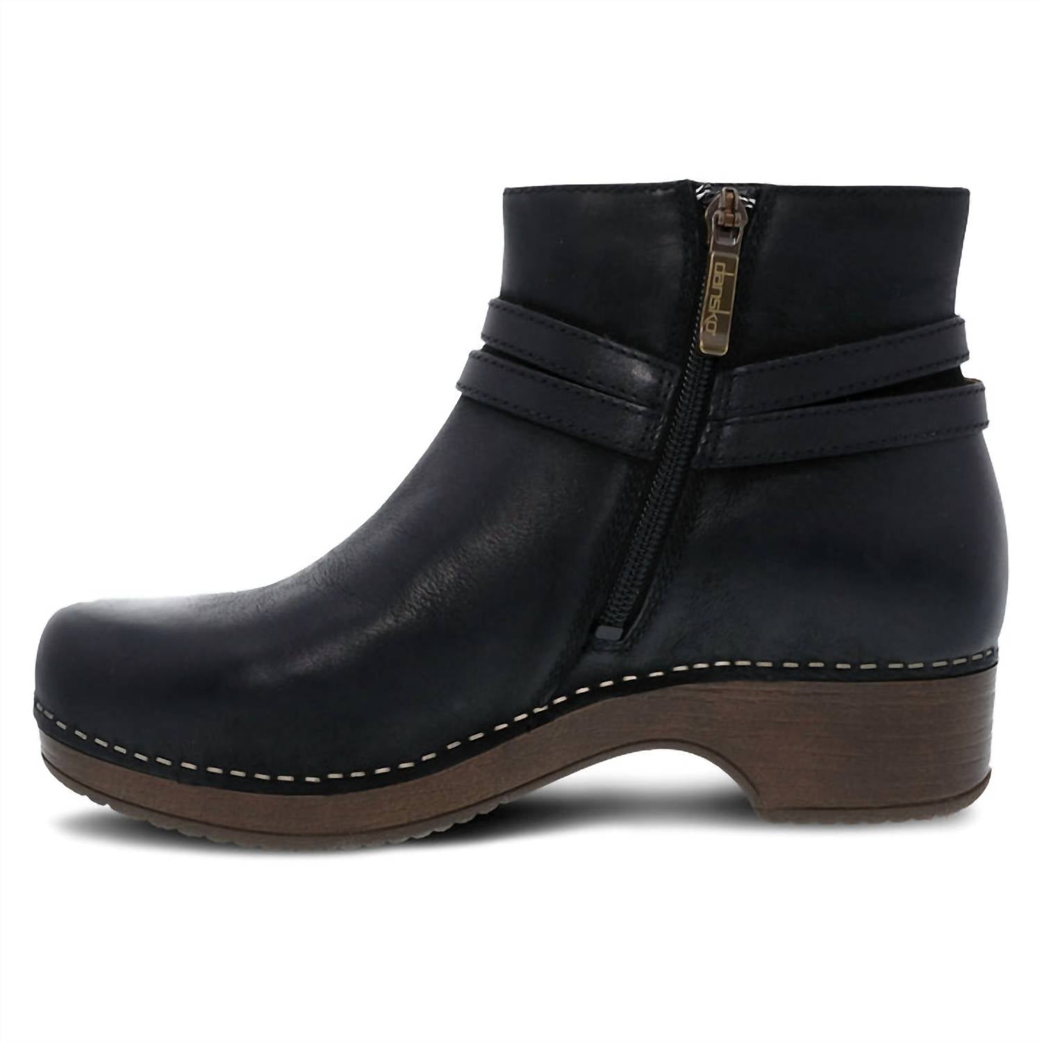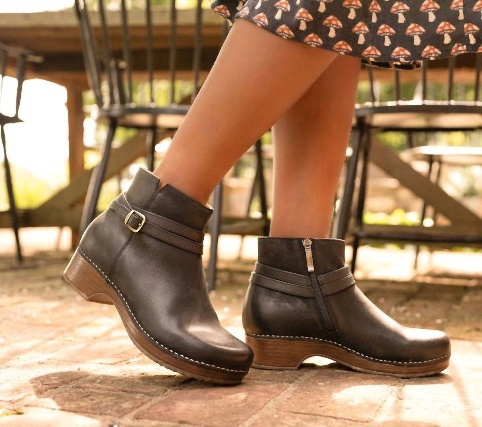 Say hello to the perfect, most versatile boot. The ankle height makes this style easily transition from day to night. Wear them with your favorite skinny jeans and tee for a more laid back look, or pair them with your favorite mini dress and jacket for a night out on the town. Step into the season with the Women's Brook Burnished Nubuck Booties by Dansko, a sleek addition to your fall wardrobe in classic black. These ankle booties feature a comfortable almond toe and a low 1.5-inch block heel, making them perfect for holiday parties. Crafted from durable leather, they ensure lasting comfort and style with patented stapled construction. Ideal for pairing with jeans or a flowy dress, these minimalist booties are essential for the Thanksgiving season.
