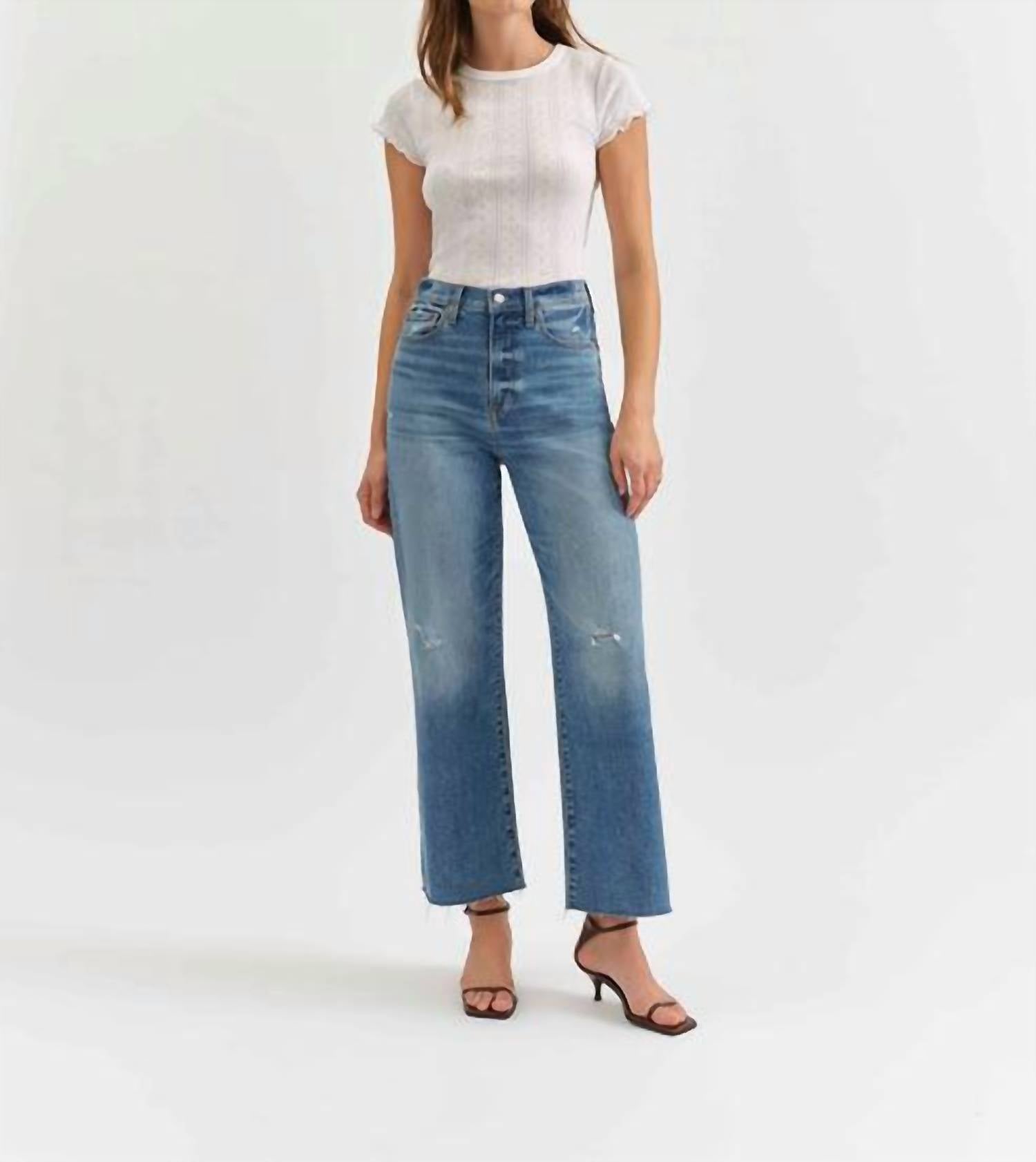 Tuck your favorite tee into these high-waist jeans for a more casual-cool feel. Introducing the Pleaser High Rise Jeans by DAZE, an effortlessly chic addition to any wardrobe with its Wide Awake Vintage color. Featuring a relaxed fit and wide-leg silhouette, these jeans offer both style and comfort. Composition: 93% Cotton, 5% Polyester, 2% Spandex. The button closure and 28" inseam ensure a perfect fit, while the medium wash adds a timeless touch. They're perfectly suited for spring vacations and Easter outings, providing a cool, vintage-inspired look. Care: Machine wash and tumble dry for easy maintenance.