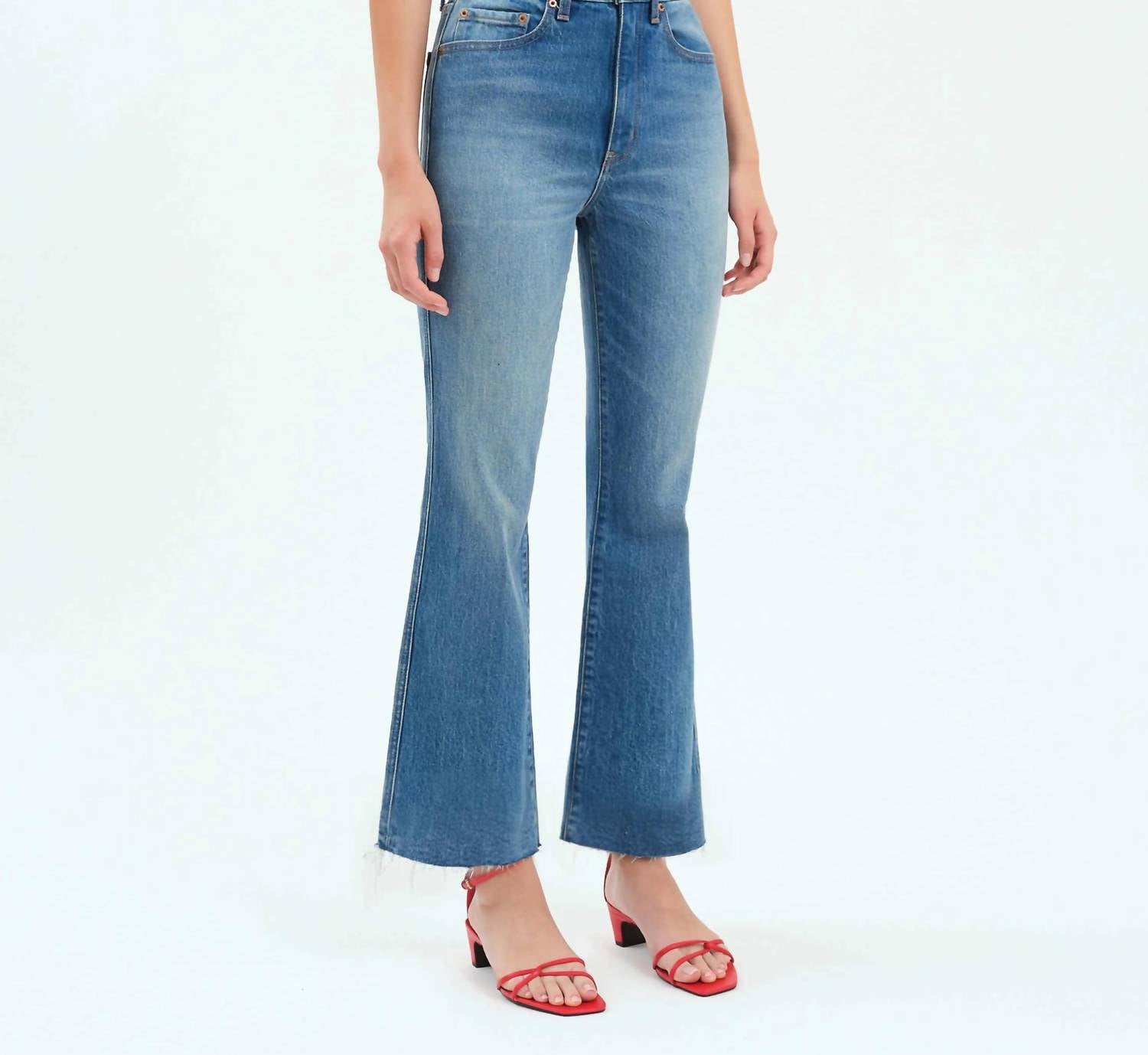 A flattering silhouette that's suprisingly versatile. Experience the effortless style of the Soho Rawcut Vixen Jean by DAZE, featuring a wide-leg flare design ideal for a relaxed fit. Crafted from a cotton blend with 99% cotton and 1% spandex, these jeans offer a high-rise silhouette with a solid medium wash that ensures versatile and easy styling. The jeans are finished with contemporary rawcut details and a button closure, providing a hint of edge to your look. Ideal for machine washing, these jeans make a perfect addition to your spring wardrobe, seamlessly transitioning from casual days to stylish evenings.