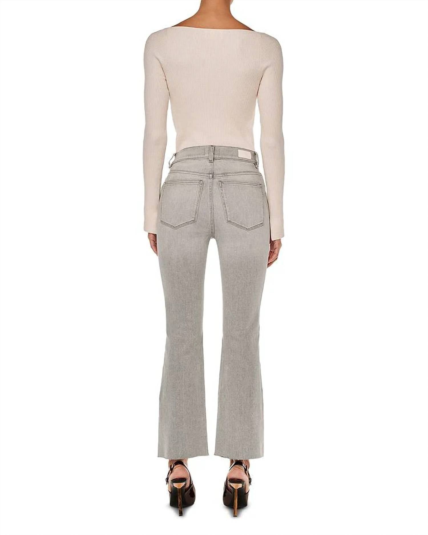 If you're looking for boot-cut, this is the jean for you. Discover the Bridget Bootcut High Rise Instasculpt Crop Jean by DL1961, a perfect blend of style and comfort in a light smoke hue. Crafted from a cotton blend with 93% cotton, 6% polyester, and 1% elastane, these jeans feature a zip fly with button closure and a contoured waistband for a precise fit. The Instasculpt™ technology ensures a smooth, sculpted silhouette with a high rise and bootcut leg style. Finished with five-pocket styling, silver-tone logo hardware, and a raw-edge hem, this imported piece is easy to care for with machine wash instructions.