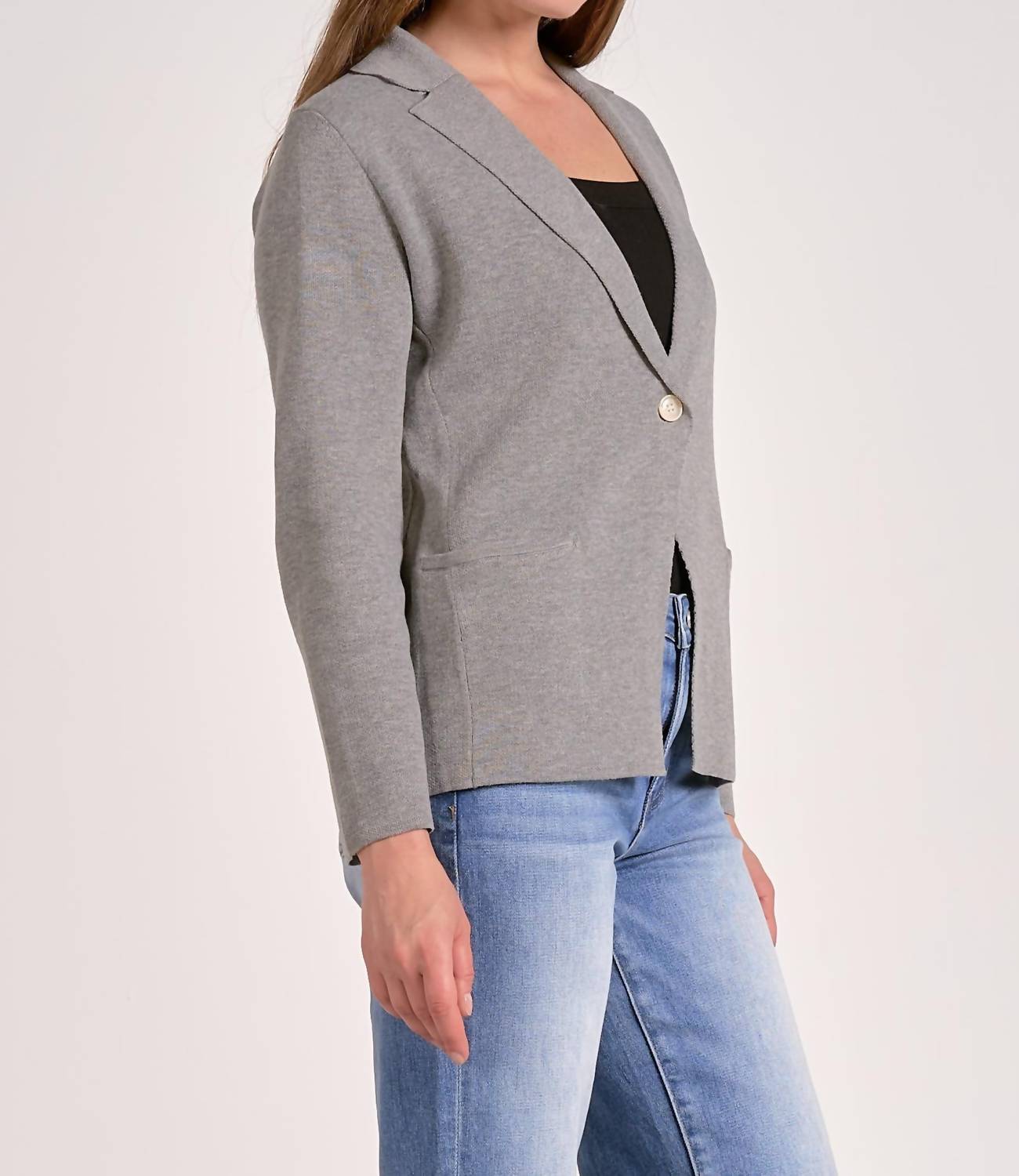 Tailored to perfection, this blazer will be your go-to jacket for years to come. Introducing the ELAN Single Button Front Sweater Blazer, a sophisticated addition to your wardrobe in elegant grey. Crafted for versatility and comfort, this long sleeve blazer combines the warmth of knitwear with the structured style of a classic blazer. Designed with a button closure and equipped with pockets, it's perfect for both professional settings and casual engagements. Care for this stylish piece with hand wash and line dry instructions for long-lasting wear.