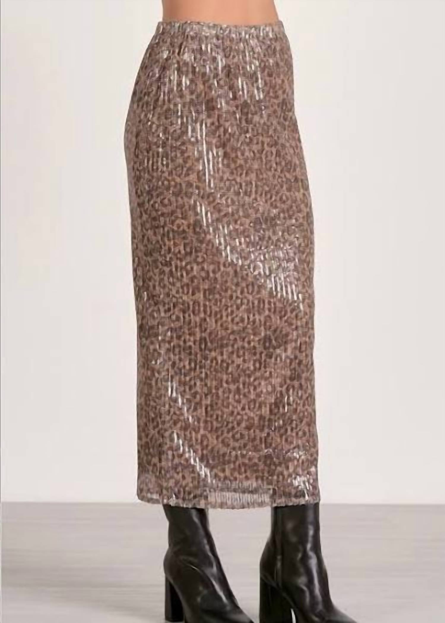 Show off just the right amount of skin in this beautifuly designed midi length skirt. Turn heads with the Women's Cheetah Sequin Skirt by ELAN, a show-stopping fusion of glamour and wild appeal. This beige midi skirt features a striking cheetah print adorned with sequins and an elasticized pull-on waistband for effortless style and comfort. Crafted from 100% polyester with a lining of 95% polyester/5% elastane, it offers a bodycon silhouette with a sleek, straight cut at 34 inches in length. Care: Hand wash. Ideal for adding maximalist flair to your summer vacation wardrobe, this piece will take you from day to night with sophisticated allure.
