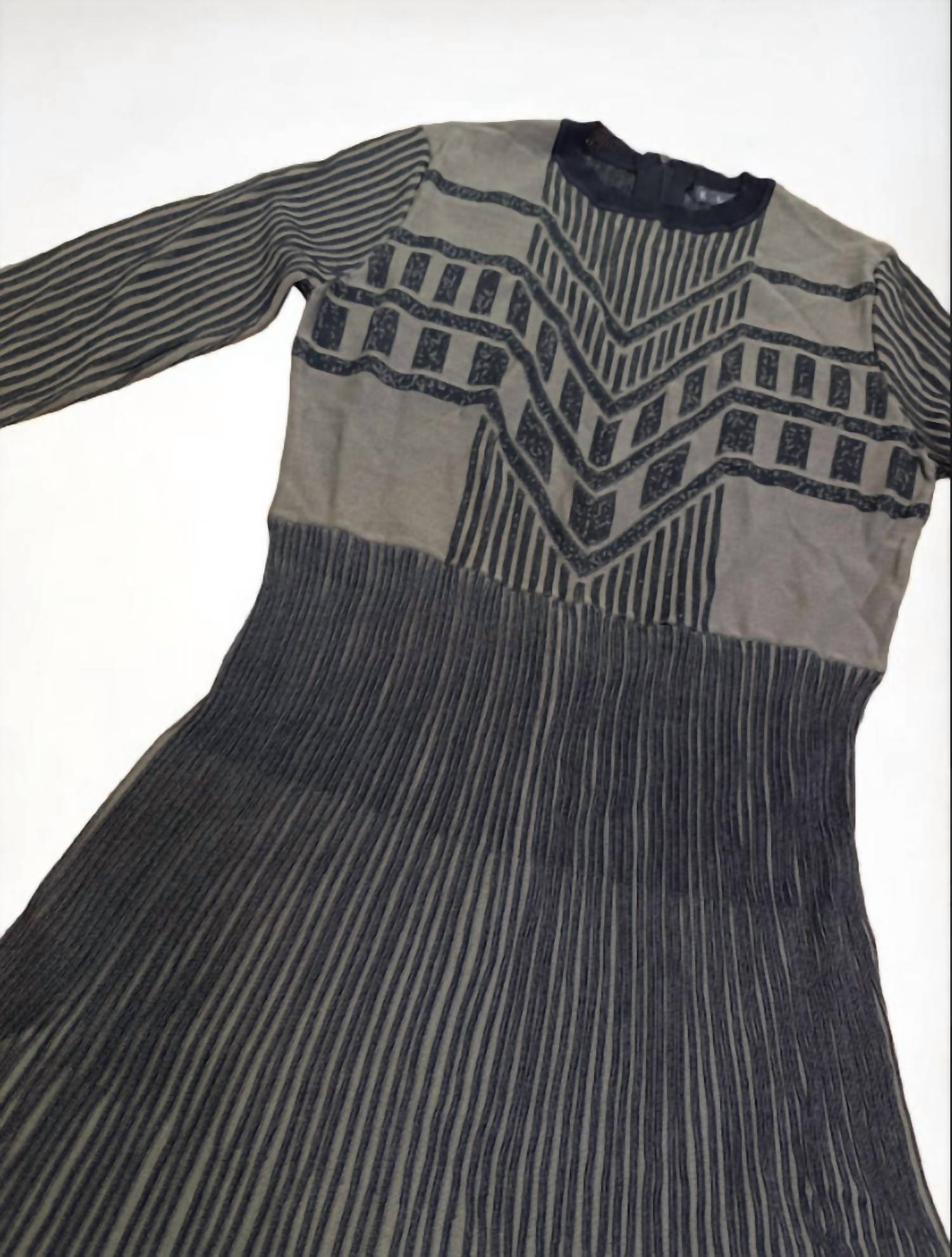 Just add slides or mules and you are good to go. Elevate your holiday party look with the Elio Textured Knit Dress in a sophisticated Back/Wine hue. Featuring three-quarter sleeves and a flattering A-line silhouette, this midi dress is a perfect blend of style and comfort. The dress comes with a geometric pattern that adds a chic touch, complete with convenient pockets and a zip closure for ease of wear. Designed for the modern woman, this dress effortlessly transitions from workwear to a festive occasion.