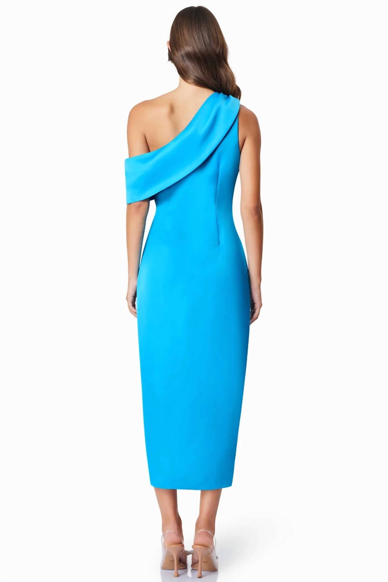 Show just the right amount of skin in this one-shoulder dress. Elevate your evening attire with the Aqua Alice Cocktail Dress by ELLIATT, a stunning sleeveless piece sure to turn heads. Crafted from a blend of 100% Polyester and 92% Polyester plus 8% Spandex, it offers a chic one-shoulder design with an off-the-shoulder drape detail. The slim-fit silhouette is enhanced by meticulous seam details, accentuating an elegant hourglass shape. Side zipper. Dry clean only.