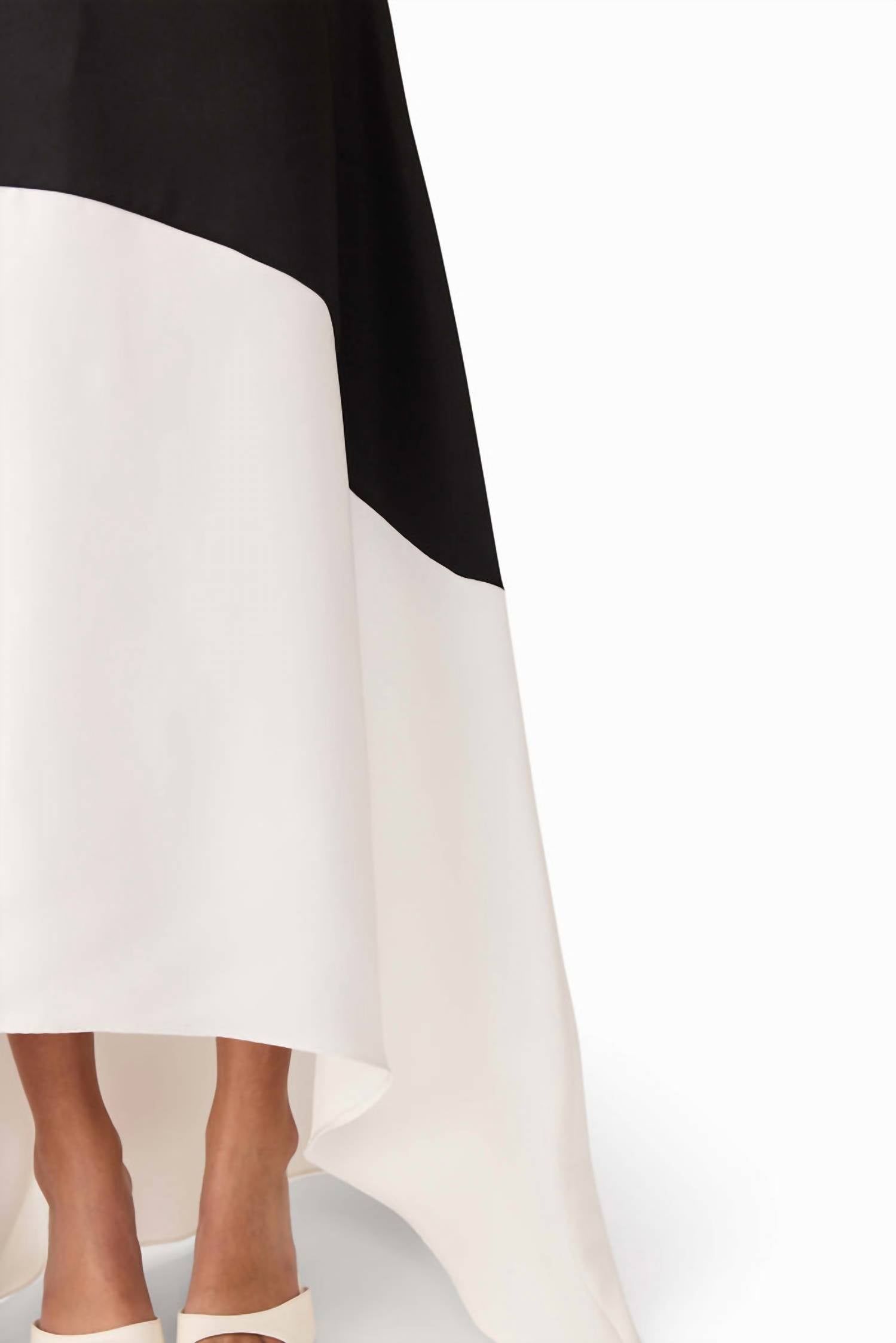 Style this maxi with your favorite statement necklace and sandals for the perfect look. Introducing the Sorrel One Shoulder Gown by ELLIATT, an embodiment of modern elegance in striking black and white. This sleeveless,one-shoulder gown is made from luxurious duchess satin, ensuring a structured silhouette with a subtle sheen. The dress boasts an A-line, maxi silhouette with a dramatic high-low hem, creating movement and showcasing the perfect amount of leg. With a precise zip closure at the center back, it offers a seamless look for any black-tie event. Composition: 100% Polyester with 97% Polyester & 3% Spandex Lining. Design embraces a pattern that blends contemporary flair with classic sophistication.
