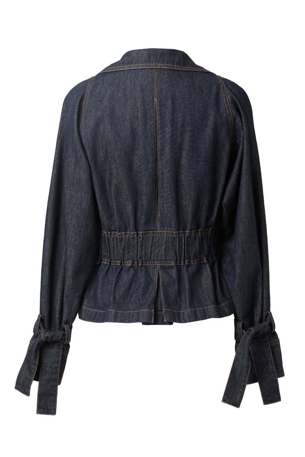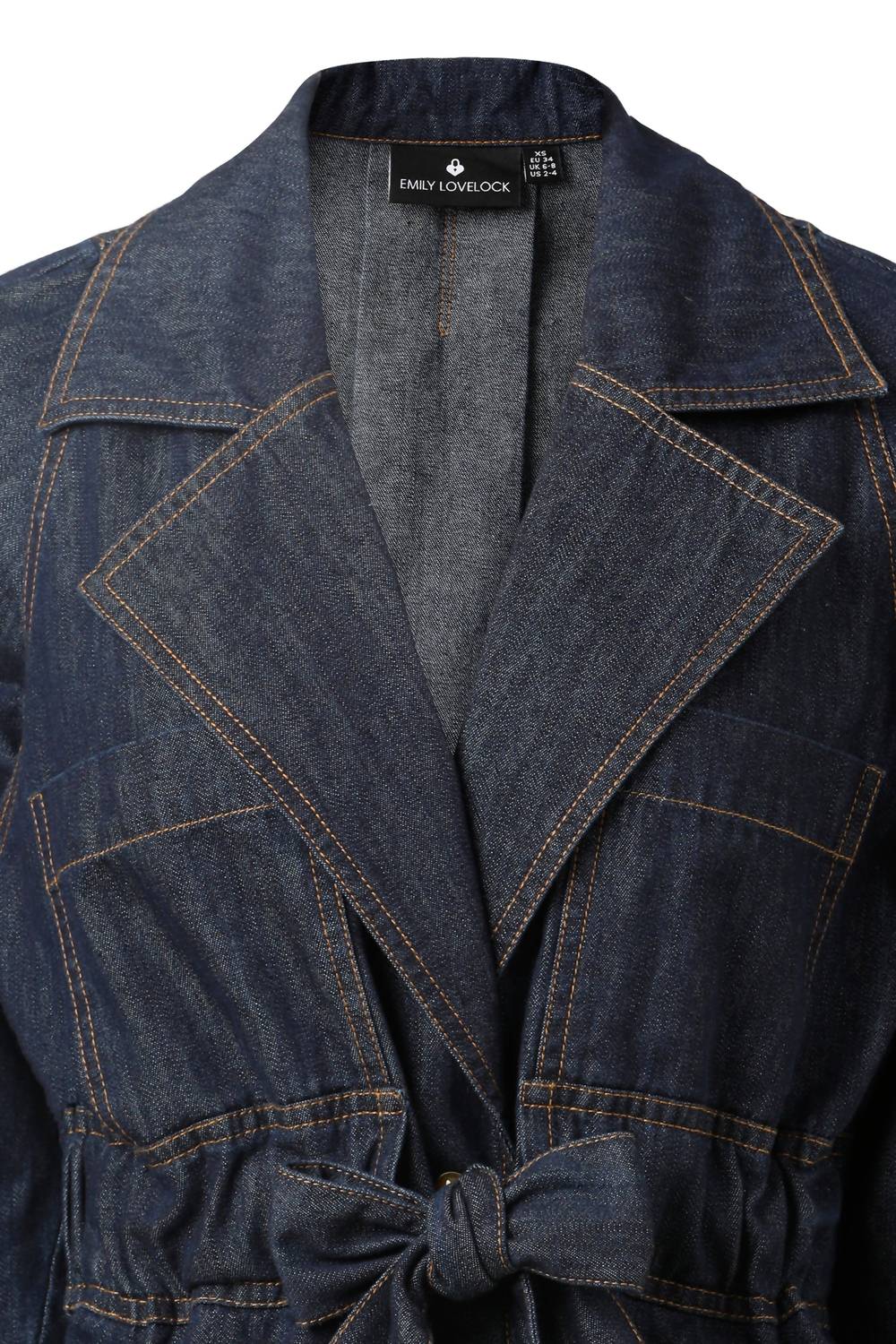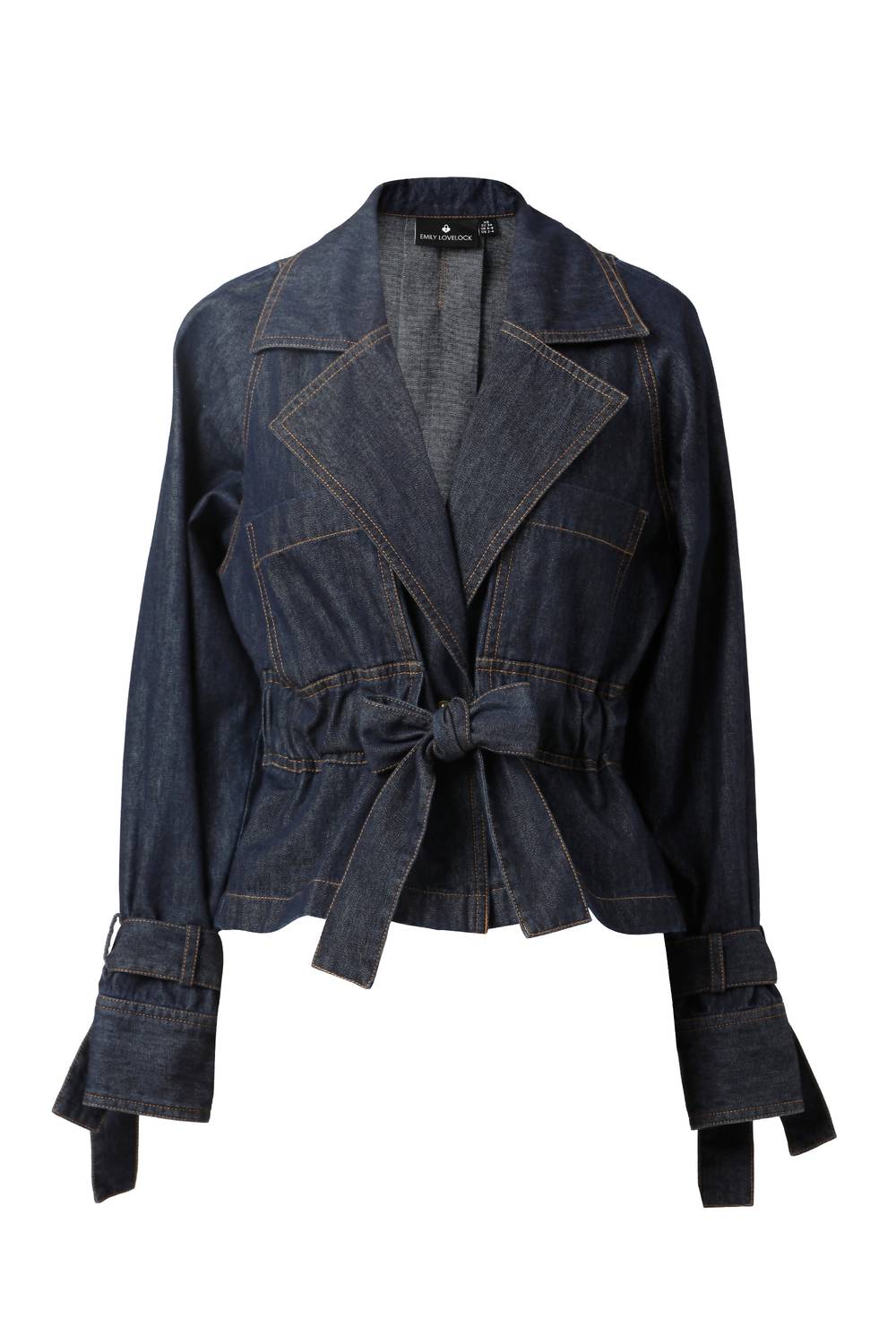 A jacket so versatile you can literally wear it with anything. Introducing the Women's Susan Jacket by Emily Lovelock, a chic addition to your casual wardrobe. This long sleeve denim jacket, crafted from solid blue denim, features an adjustable waist tie and an elastic back for a custom fit. Closure: Unique heart button closure with tie cuffs for added flair. Perfect for vacation or streetwear, it seamlessly complements any spring outfit.