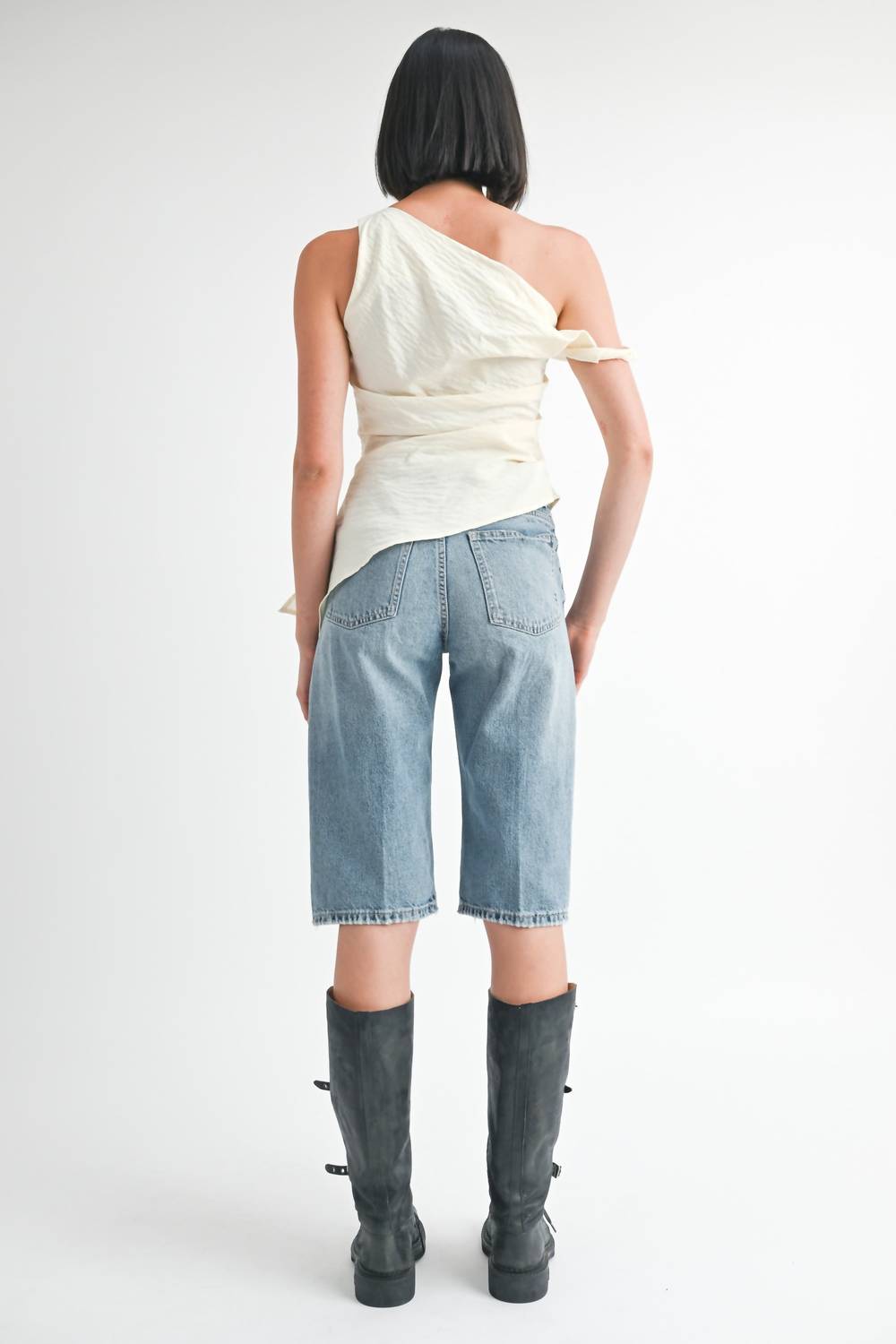 Discover the versatile charm of this tunic blouse, designed with both layering and standalone wear in mind. Its flattering silhouette and stylish details make it a closet essential. Embrace chic summer style with the Dovie Asymmetrical Tunic Top by Emory Park, a must-have in a versatile taupe shade. Designed as a sleeveless, off-the-shoulder piece, this tunic is crafted from a blend of 51% Rayon, 29% Nylon, 17% Polyester, and 3% Spandex. Imported with no pocket detail, the tunic effortlessly enhances your wardrobe with its solid pattern and elegant silhouette. Whether you're on vacation or enjoying a night out, its asymmetric style is sure to elevate your look.