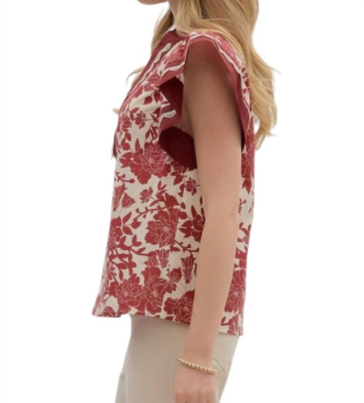 Entro - Floral Flutter Sleeve Top