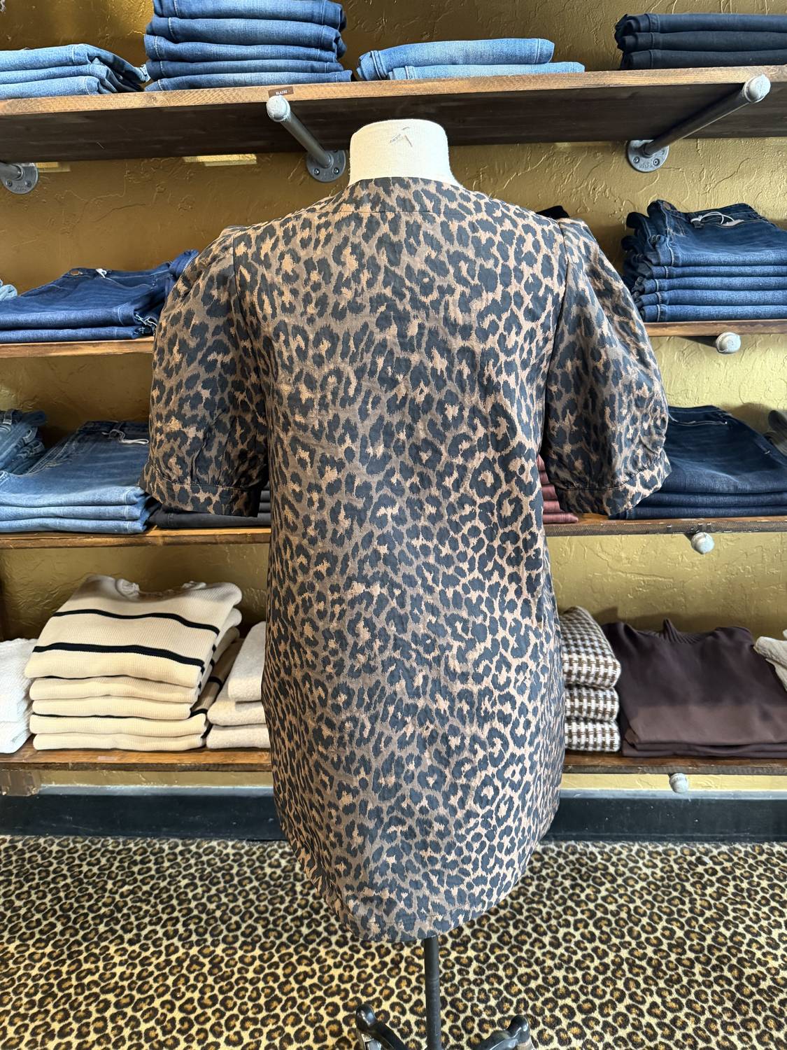 The perfect mini dress for those warmer months. This lightweight woven mini dress features pleated short sleeves with a cuff band and gold-rimmed buttons down the front. It has side pockets, is unlined and non-sheer, and is made from 100% polyester. Fits true to size.