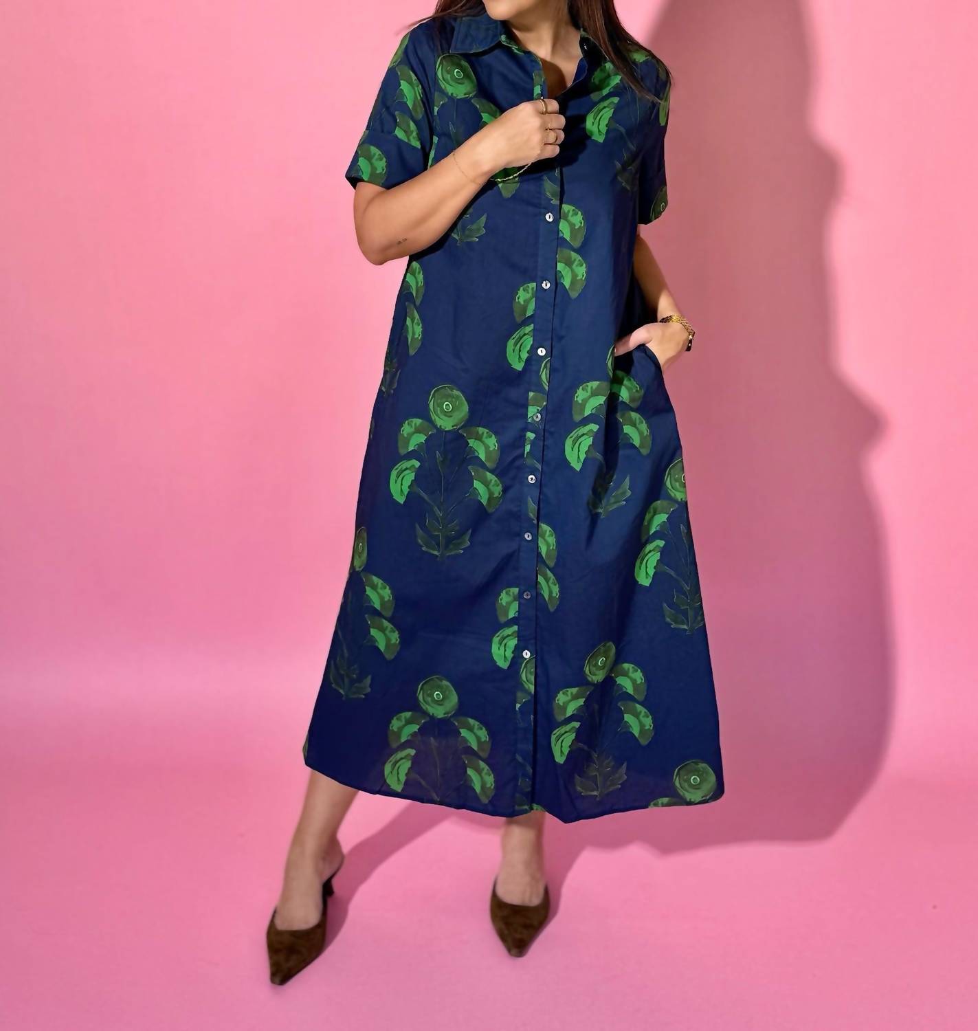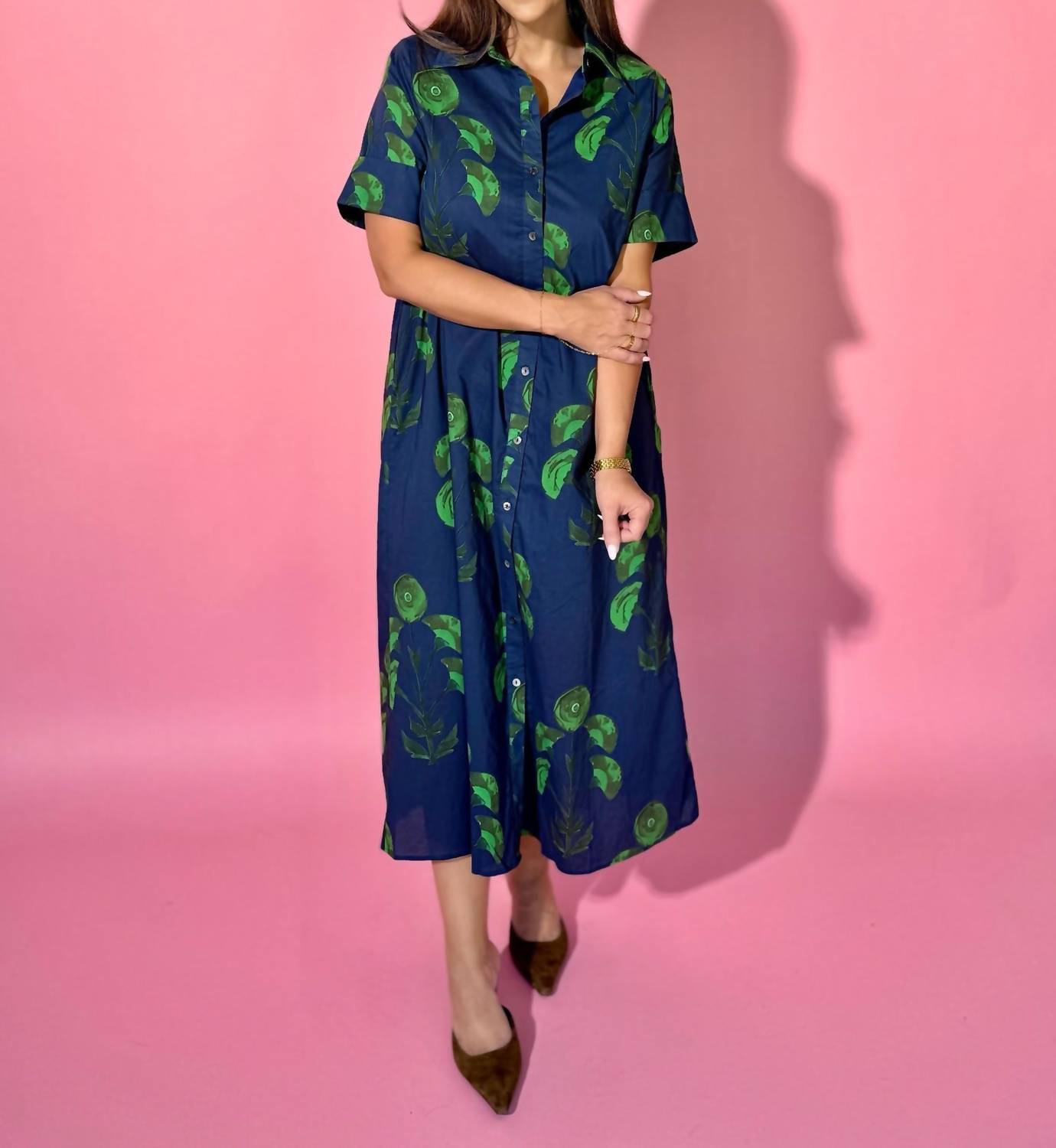 The perfect length dress does exist. Introducing the Meadow Muse Floral Midi Dress by Entro, a charming choice for your spring celebrations in a stunning blue and green floral print. This short sleeve dress is crafted from 100% cotton, offering a lightweight and non-sheer design with a classic shirt silhouette. Thoughtful details include button closure at the front and functional side pockets, all beautifully lined for added comfort. Care: Hand wash and lay flat to dry. Cassie at 5'4'' wears a size small, while Emily at 5'9'' opts for a medium, ensuring a true-to-size fit for all.