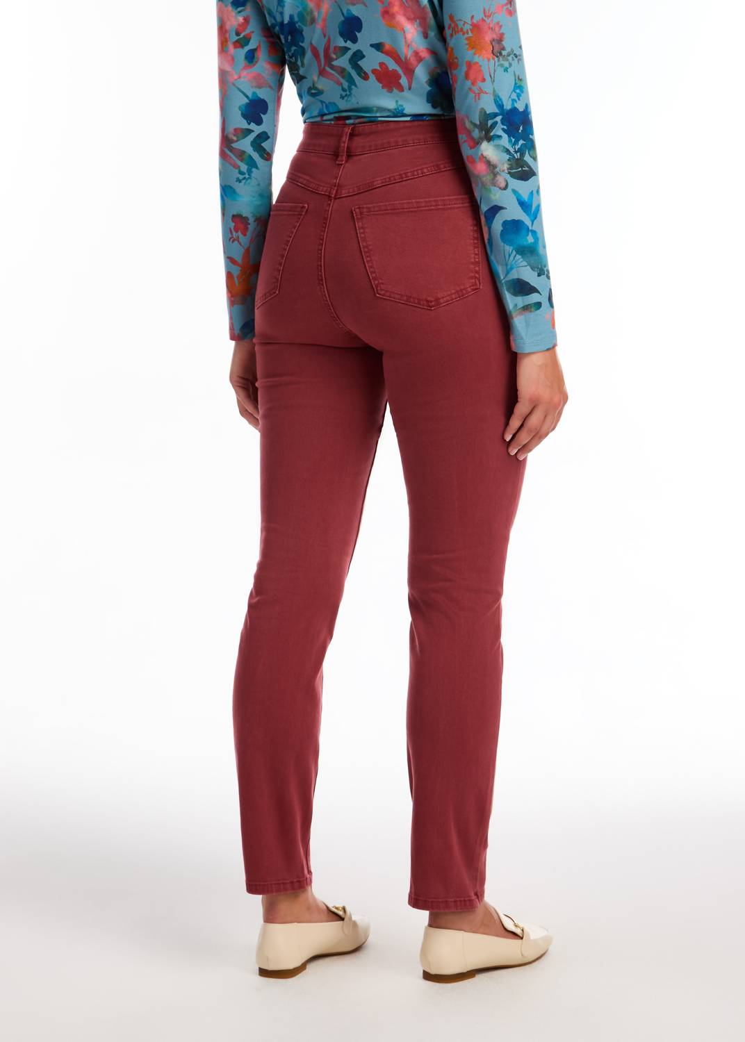 This classic straight leg jean has a perfect fit and goes with just about everything. Discover the Suzanne Straight Leg Denim by FDJ, a fusion of classic sophistication with modern ease in a striking rust red. These jeans offer a relaxed fit with a high-rise and straight-leg silhouette, complete with a five-pocket design. Crafted from a durable cotton blend composed of 89% cotton, 10% polyester, and 1% elastane, these jeans feature a secure zip closure for a flattering look. Care for them easily with machine wash and tumble dry instructions. Enjoy comfort and style while you travel this summer.