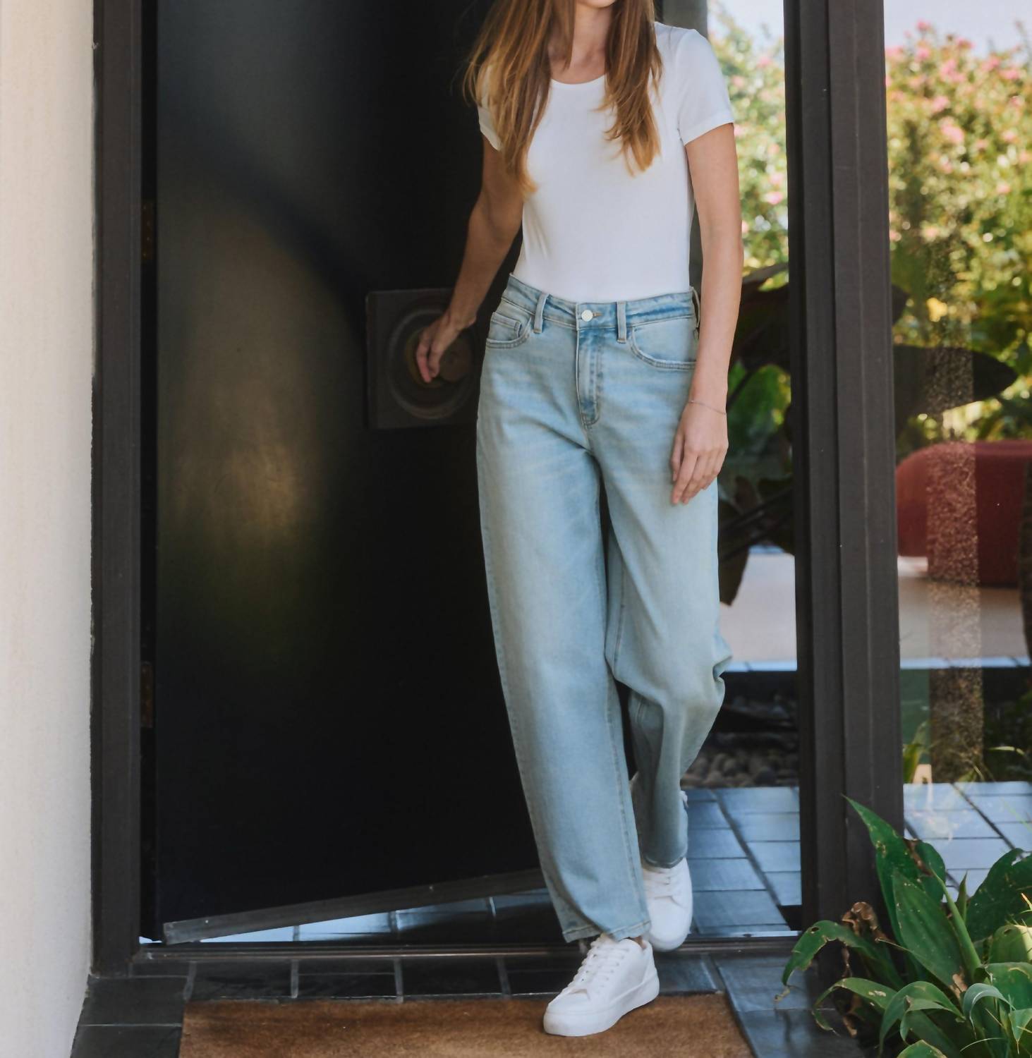 High-waist is here to stay and we especially love this style. Add flair to your denim collection with the Flying Monkey High Rise Ankle Barrel Jeans, perfect for a casual yet chic look. These relaxed fit jeans feature a high-rise waist and a stylish straight leg design that ends at an ankle length. Crafted with a comfortable cotton blend, they include a slightly distressed finish and button closure. Composition: 95% cotton, 4% polyester, 1% spandex. Care instructions: Machine wash cold inside out, tumble dry. Model is 5'9" wearing a size 26, with a rise of 10.5” and an inseam of 28''.