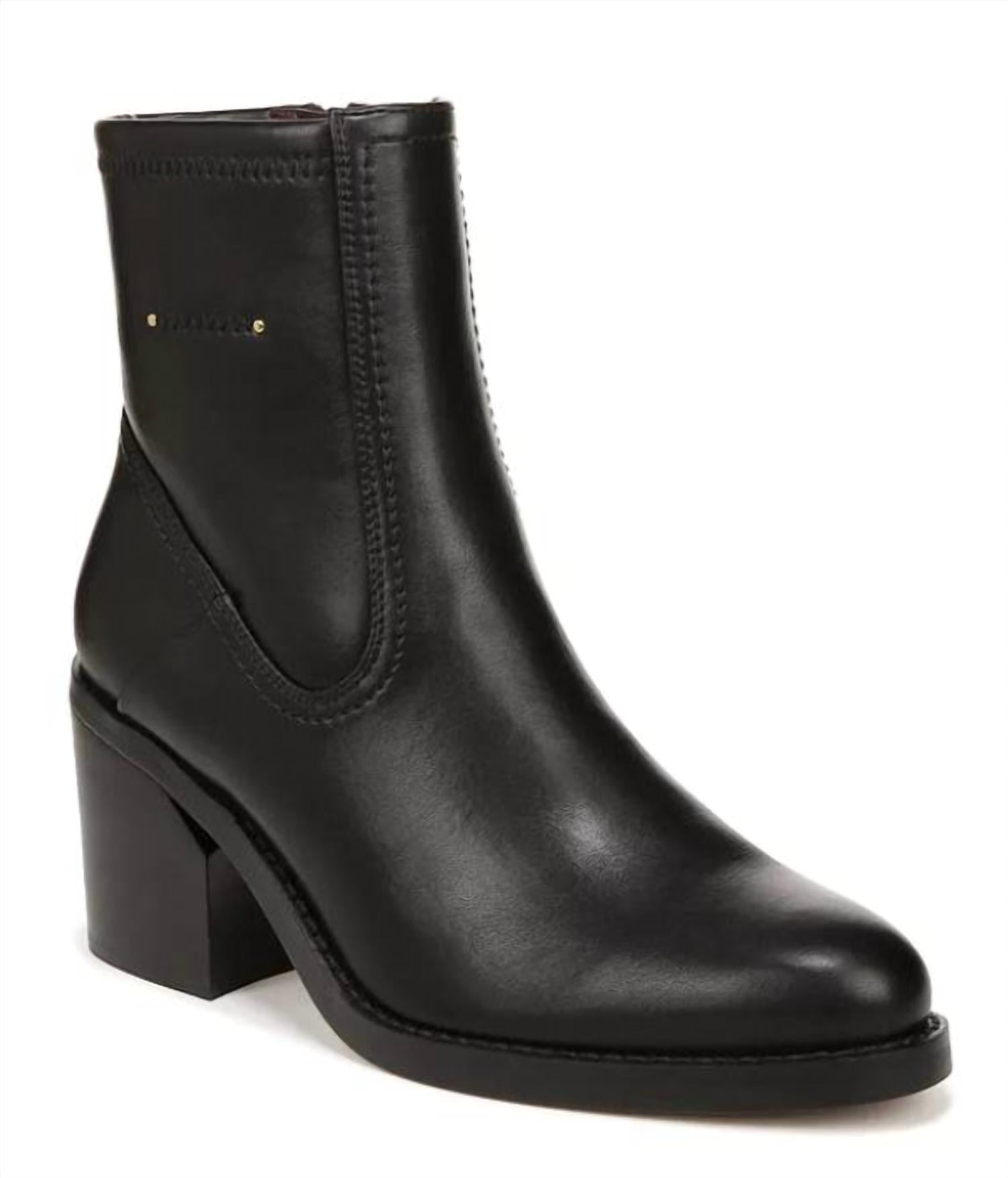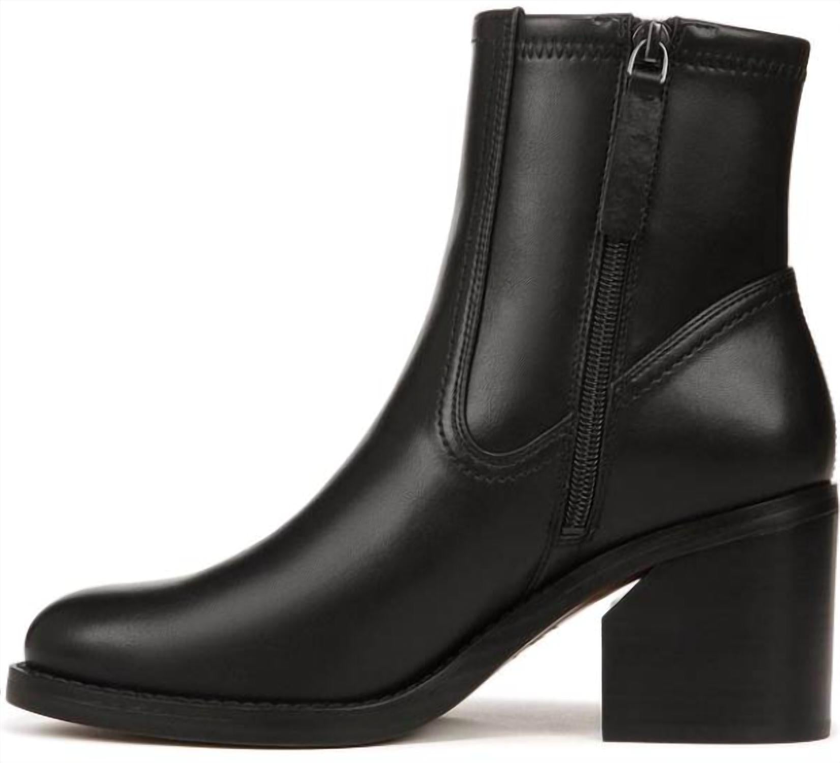 Step out in confidence and showcase your impeccable taste with these fashionable and versatile boots. Their classic style will have you reaching for these boots season after season. Step out in style with the Women's Abril Ankle Boots by Franco Sarto, perfect for your travel adventures. These sleek black boots feature a block heel with a 3" height, round toe shape, and a convenient side zipper closure. Made with a faux leather upper and synthetic lining and sole, they boast a 5.31" shaft height and 9.45" circumference. Care for these Western-inspired booties by spot cleaning them as needed.