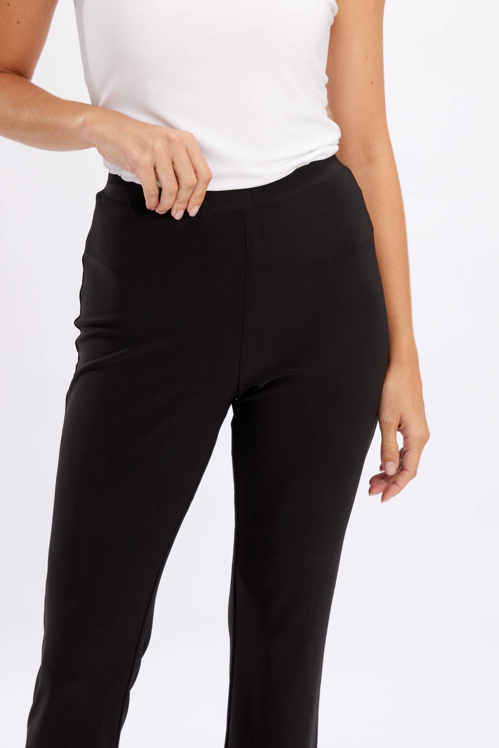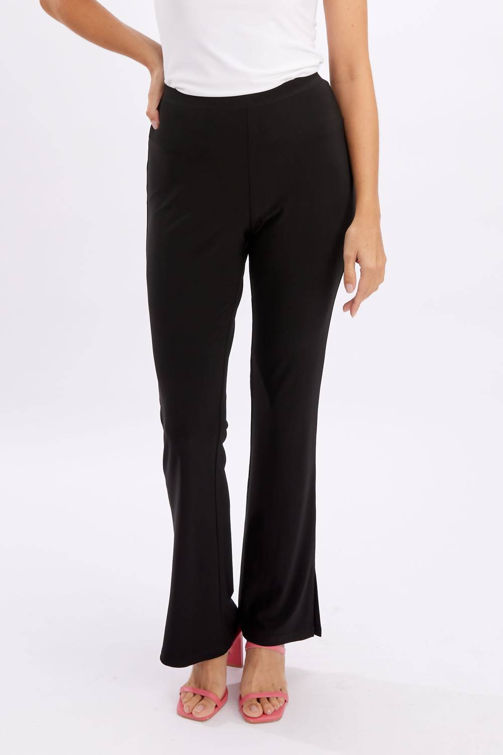 Discover the Mid-rise Casual Trousers by Frank Lyman, crafted for contemporary style in versatile black. Made from a blend of 95% Polyester and 5% Elastane, these trousers feature a comfortable elastic waist and a chic flared fit. With an approximate inseam length of 30 inches (76 cm) for size 12, they are perfect for a polished look. Care: Cold water hand wash or hand wash cycle, and hang to dry. The model is 5'9" (175 cm) and wears a size 6.