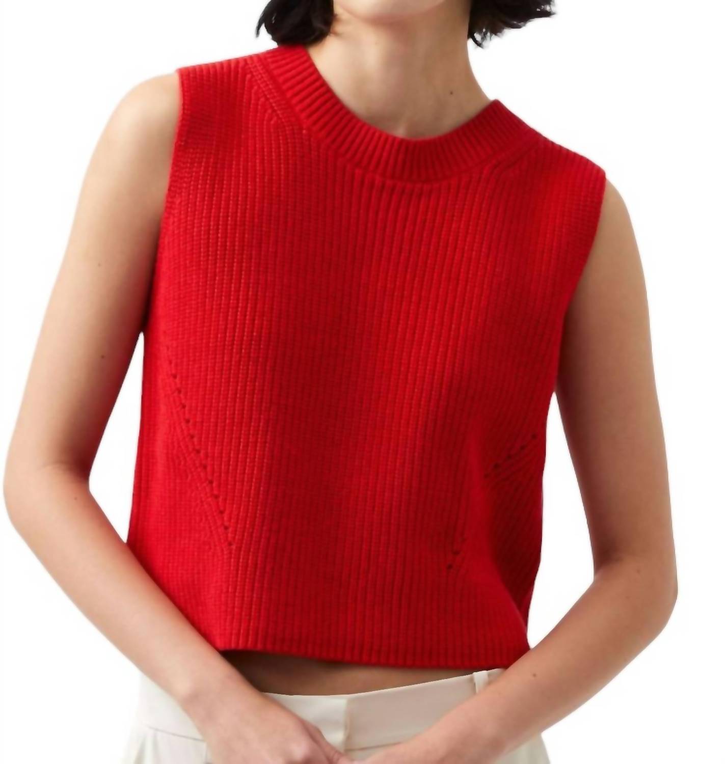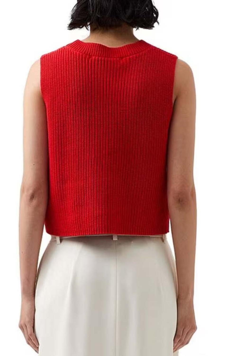 A vest so versatile you can mix and match it with almost any outfit and it will feel brand new every time. Elevate your summer wardrobe with the Women’s Mozart Crew Neck Sleeveless Vest by FRENCH CONNECTION in striking Mars Red. This minimalist, textured vest is crafted from 100% cotton for breathable comfort, featuring a classic crew neckline and convenient pullover construction. With an approximate length of 17.3 inches, it's ideal for holiday gatherings and effortless summer styling. Care instructions include machine wash and line dry for easy maintenance.