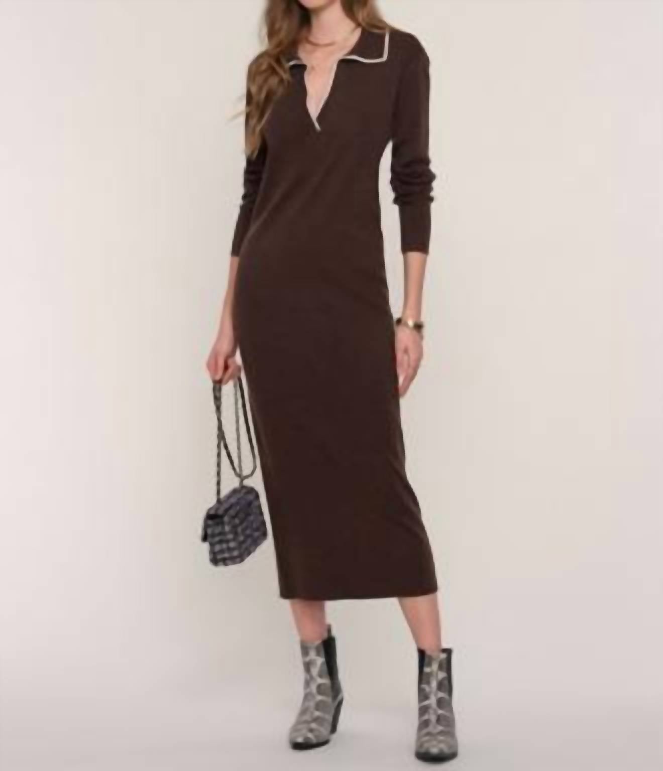 A flattering yet comfortable dress you'll be reaching for season after season. The Tissa Dress is a sweater dress you'll never want to take off. Made from a super soft yarn it has a slim fit, knit lace tipped polo collar that buttons up, with a slit which reaches the top of the knee. Dress is stretchy and a chic Midi length.