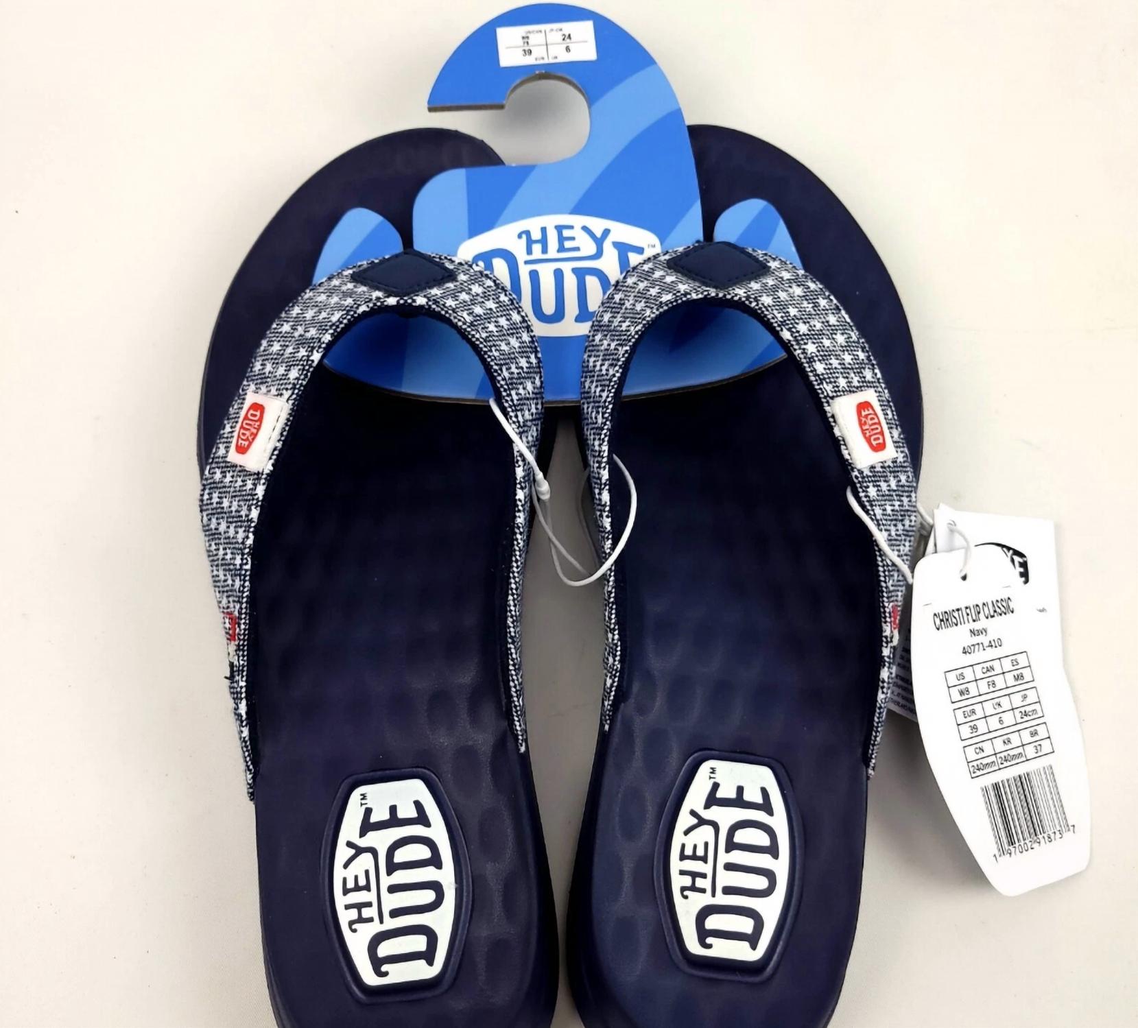 Classicly cute and all-day-wearable. We love this sandal. Step into summer with the Women's Christi Flip Classic Sandal by HEY DUDE, a perfect choice for vacation-ready streetwear. Featuring an open toe and flat heel design, these navy blue sandals provide effortless comfort and style. Ideal for adult women, they fit seamlessly into any casual summer occasion.