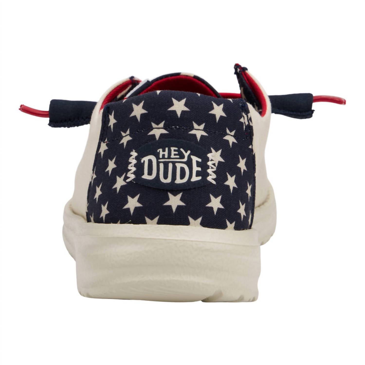 Loafers so versatile you can wear them with just about anything. Step into style with the Women’s Wendy Americana Shoes by HEY DUDE, featuring a timeless round toe and a festive patriotic color scheme. These flats are perfect for springtime vacations and 4th of July celebrations, embracing the nostalgic Y2K trend. The shoes boast a flat heel ideal for all-day comfort. Crafted especially for women, they combine style and function effortlessly.