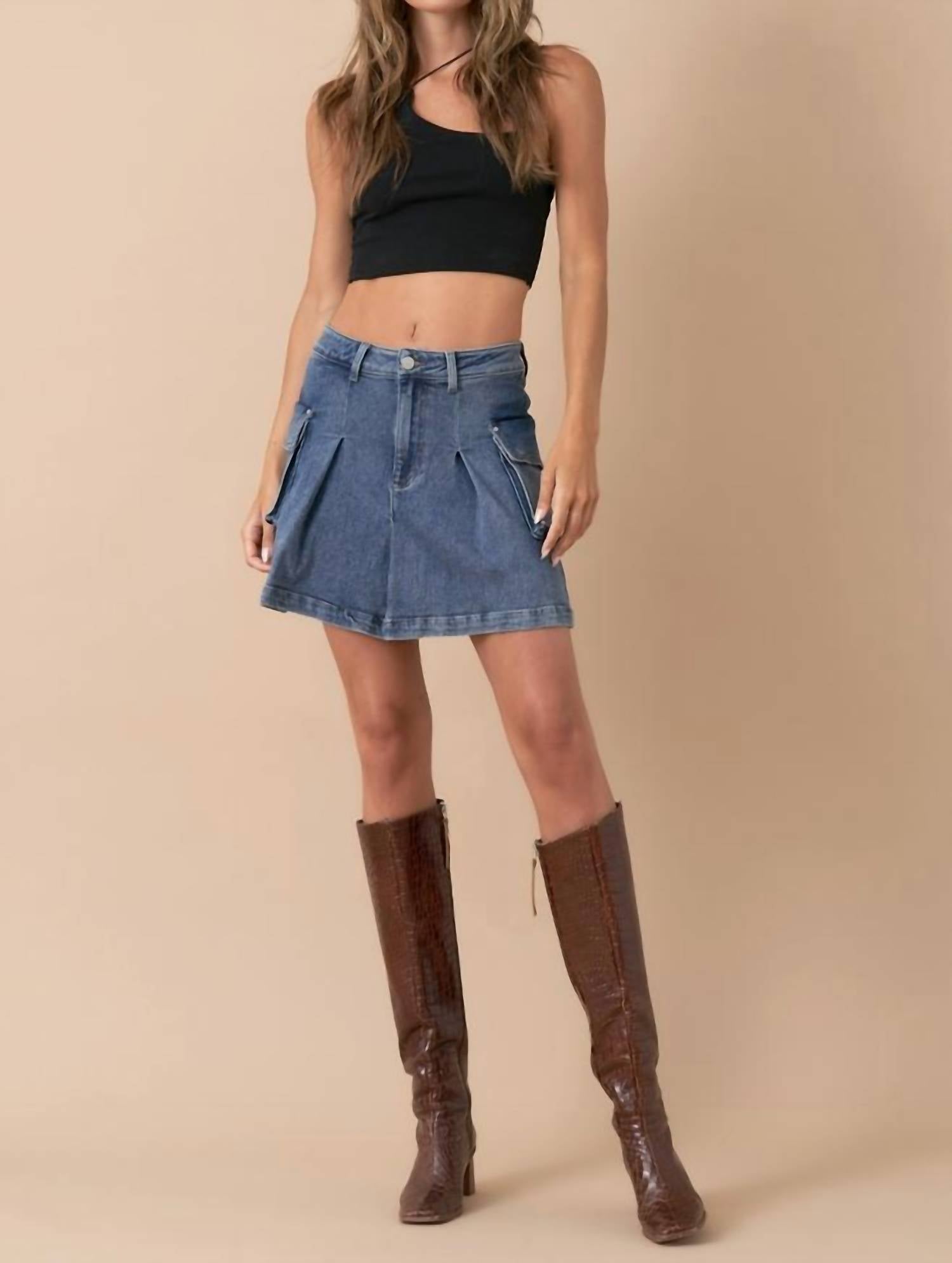 Tuck in your favorite tee for a more laid-back vibe. The Insane Gene Cargo Denim Skirt in a versatile blue hue is a solid-patterned piece perfect for a vintage-inspired look. Made from a comfortable stretch fabric, it combines a regular fit and mid-rise waist with a pleated cargo design, making it ideal for spring music festivals. Its composition of 51% Cotton, 43% Rayon, 5% Polyester, and 1% Spandex ensures both style and comfort. Originating from China, this mini skirt closes with a zipper fly and features convenient pockets. For care, simply machine wash. The skirt has a front length of 15 inches, adding a playful touch to your wardrobe.