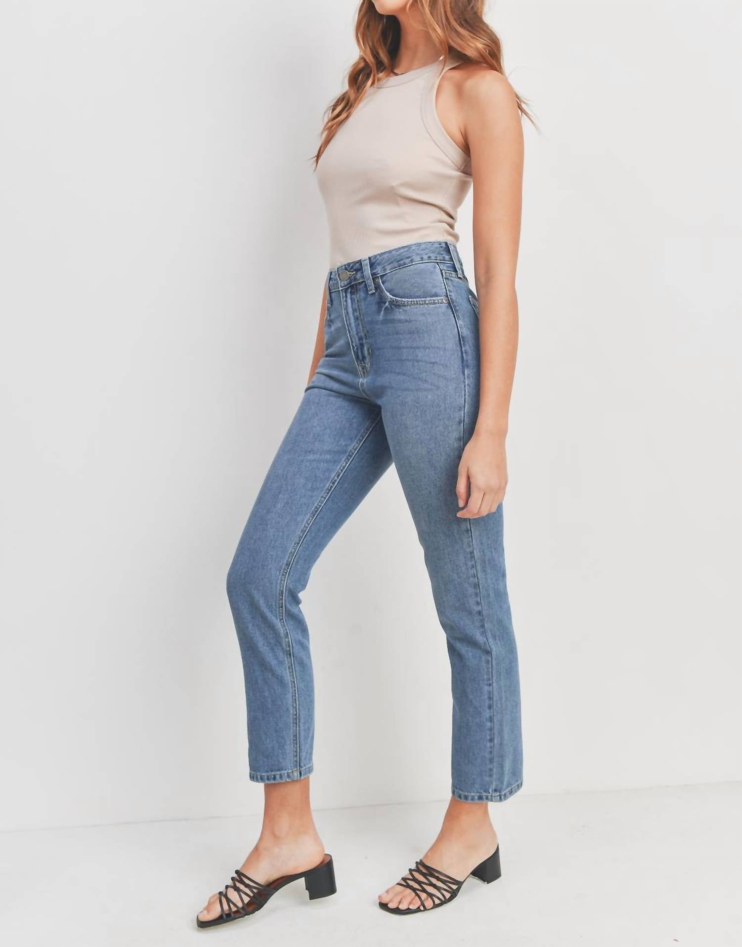 These must-have jeans are fit to perfection. The Women's Non Stretch Mom Jeans by JBD offer a relaxed fit and high-rise waist, perfect for a flattering silhouette. Crafted in medium wash textured denim, they feature a tapered leg and are ideal for spring streetwear and vacation style. The jeans boast an 11" rise with a 28" inseam and a 6" leg opening, providing comfort and versatility. Designed with a zip closure and functional pockets, these stylish jeans can be effortlessly dressed up or down.
