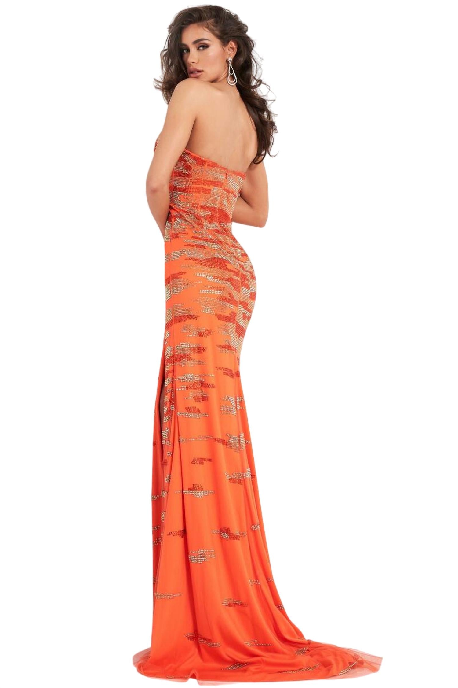 Turn heads in the cutest and most flattering evening dress. Step into bold sophistication with this fitted gown, designed in beaded mesh layered over a sleek solid lining. The strapless straight neckline offers a clean, modern look, while the thigh-high slit adds a striking touch of allure. With its intricate detailing and confident silhouette, this dress is perfect for a night where you want to look—and feel—unforgettable.