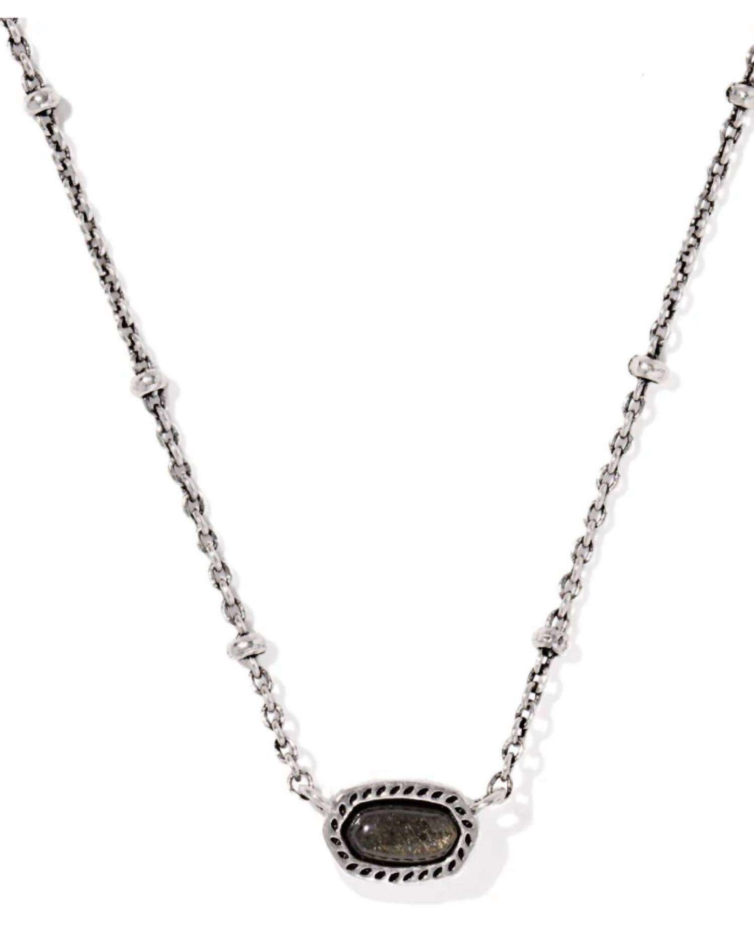 Both understated and impactful, you'll be reaching for this one-of-a-kind necklace season after season. Discover the Women's Mini Elisa Satellite Pendant Necklace by Kendra Scott, an elegant fashion accessory crafted in silver. This necklace showcases a genuine obsidian gemstone, providing a timeless and sophisticated appeal. Made with sterling silver and silver plating, its design reflects a high-quality finish, catering to all occasions. Carat size ranges between 0.26 to 0.50 for that perfect refined touch.